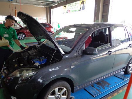 今回、デミオ オイル交換・無料安全点検作業です。