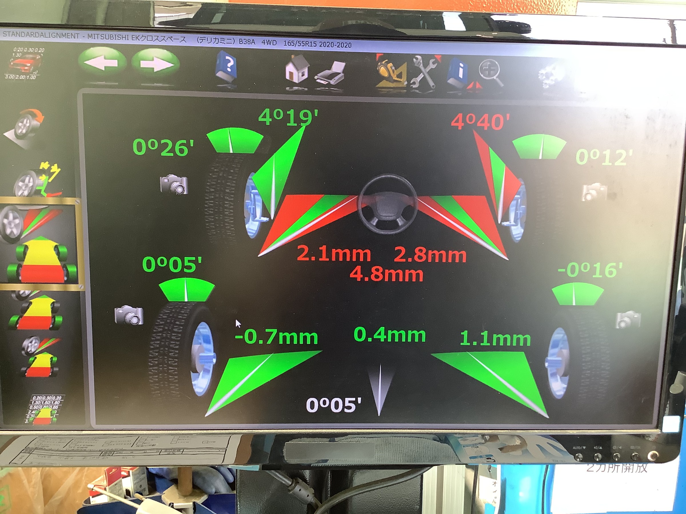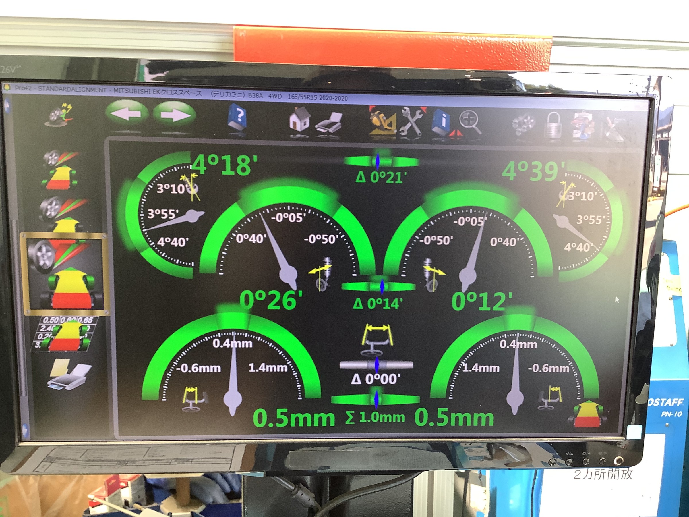デリカミニ アライメント調整 ポスト 2023年10月16日 ↓ タイヤ館だけ!安心の定額制 ↓ 便利なサブスク購入はこちらをクリック ↓ タイヤ館ネットショッピング ↓ お買い得商品はこちらをクリック ↓ Amazonで手軽に購入 ↓ Amazonで購入はこちらをクリック 《作業詳細》 【車種】三菱 デリカミニ 【作業】アライメント測定・調整作業 今回はリフトアップをされたのでアライメントの調整依頼でした。 やはりズレが生じています。 調整個所はフロントトウの2か所になります。 作業時間は1時間~1時間半程度です。 ホームページ内の予約ボタンをクリックで、WEB予約・WEB相談が出来ますのでご利用ください。 タイヤ館 一宮御坂 住所:405-0076山梨県笛吹市一宮町竹原田1320-1 電話番号: 0553-20-5200 相談予約 カテゴリ:タイヤ関連
