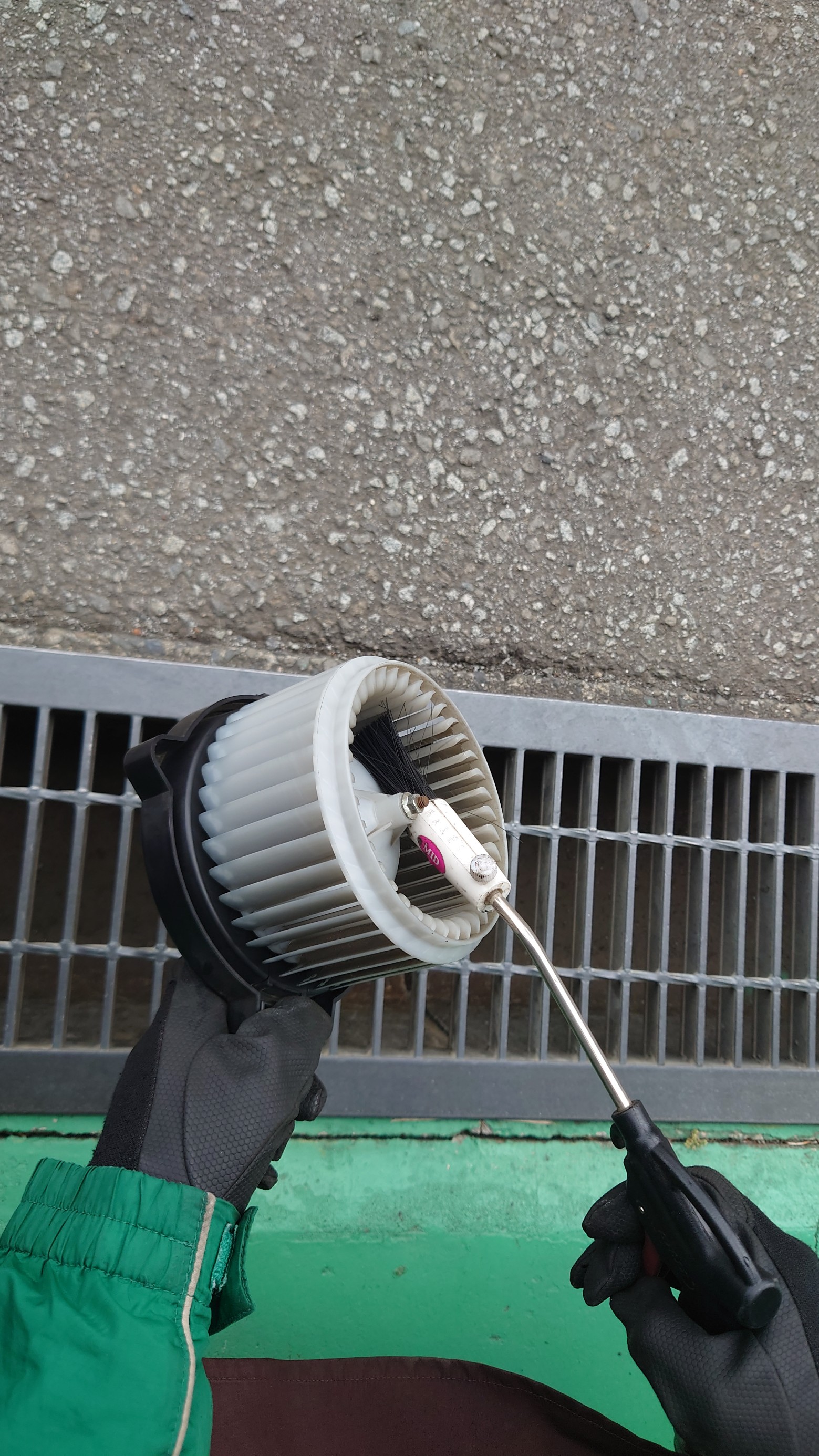 ブロアーファンも汚れていましたので、エアーで吹いて清掃します。