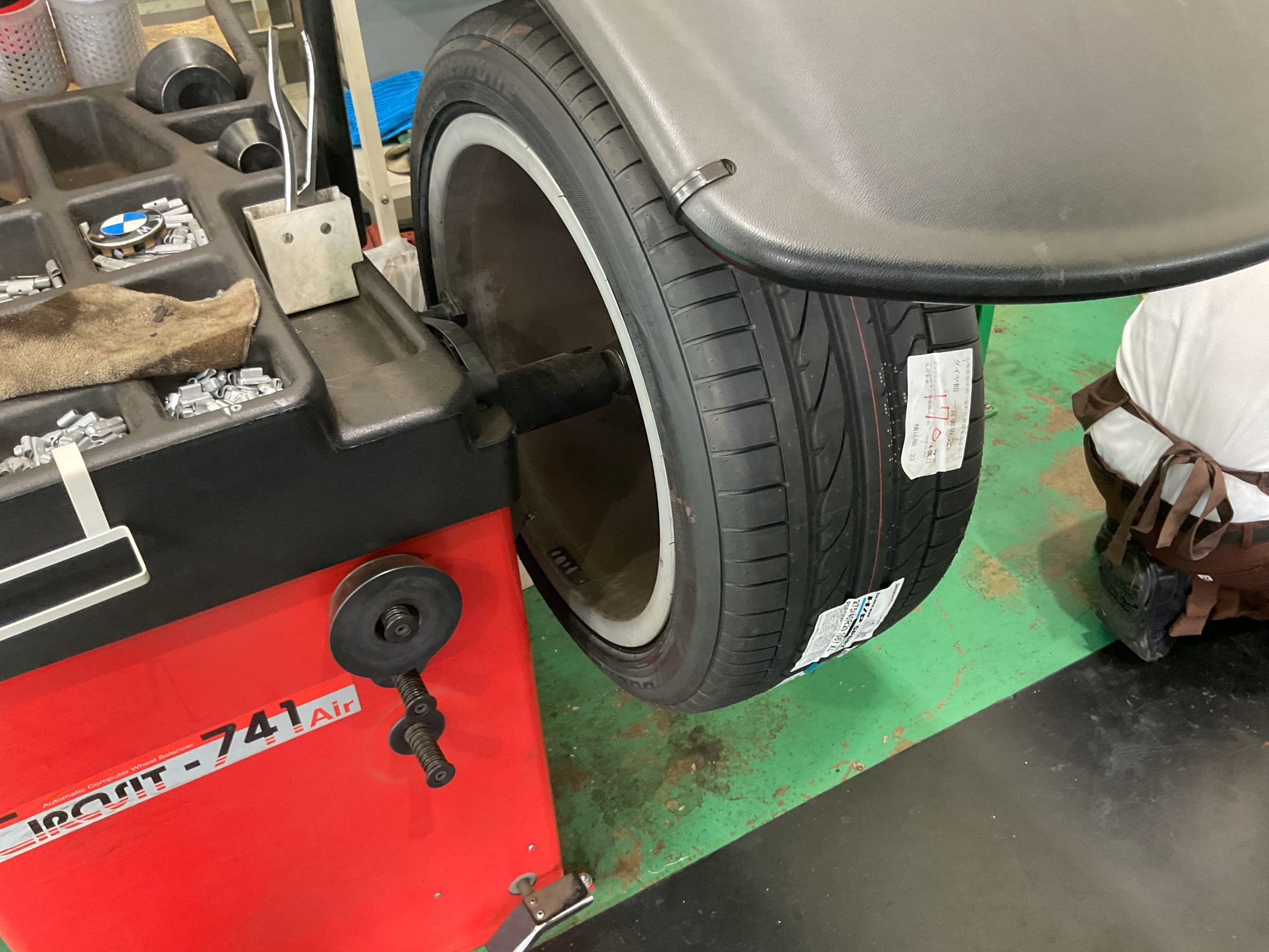 リアタイヤが片摩耗を起こしていましたので、アライメント調整も行います。