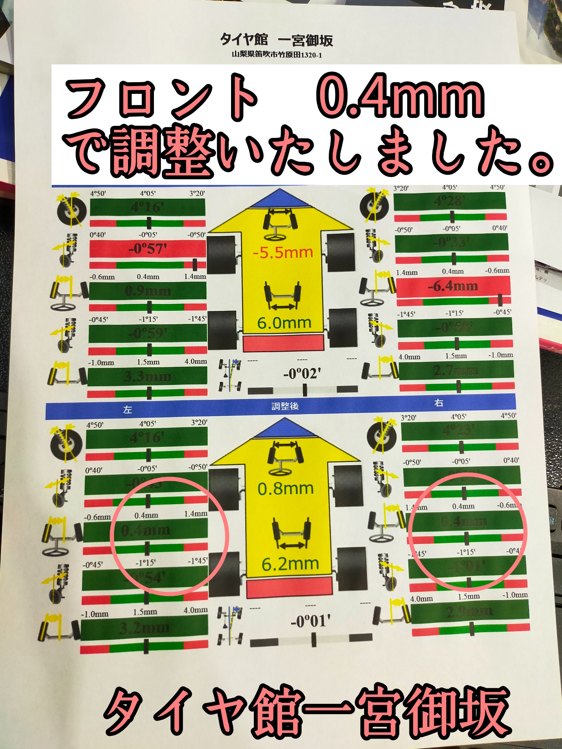 調整後、0.4mmで合わせ、ハンドルもセンターで快適に運転ができます。
