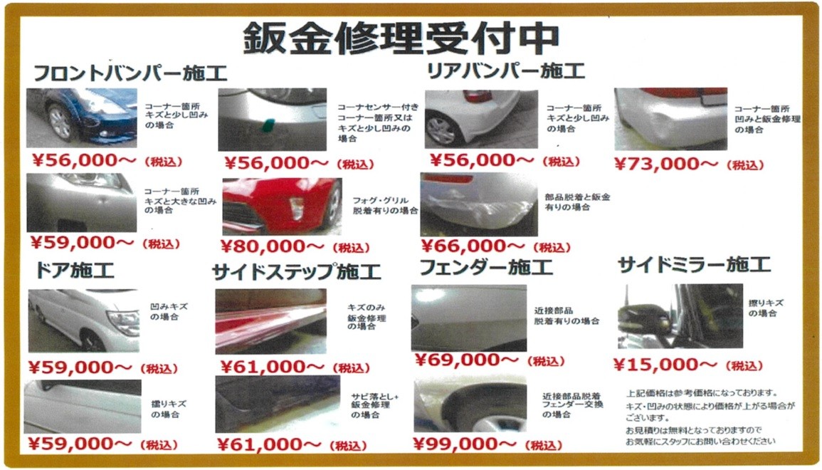 クルマのキズ・ヘコミで困ったときにも、板金塗装は当店におまかせください!!