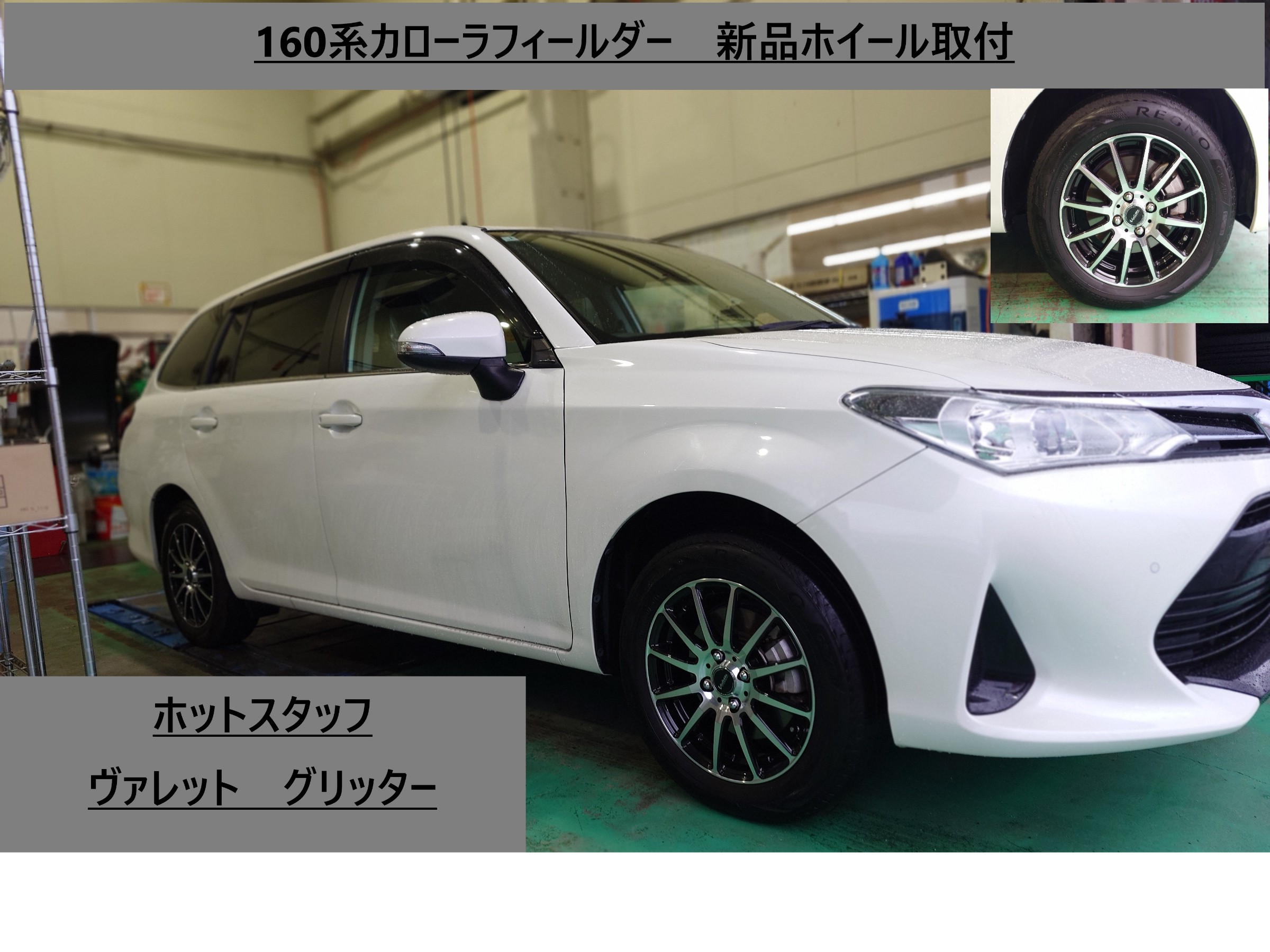 160系カローラフィールダー 新品ホイール取付 ヴァレット グリッター