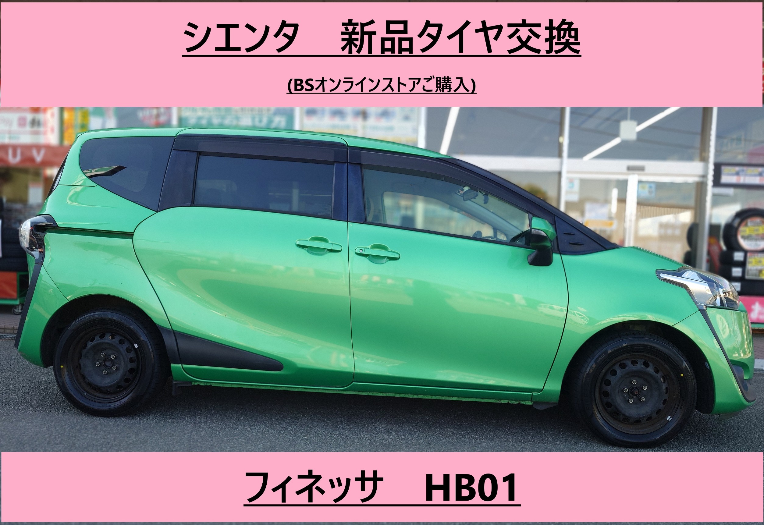 シエンタ新品タイヤ交換(BSオンラインストアご購入)フィネッサHB01