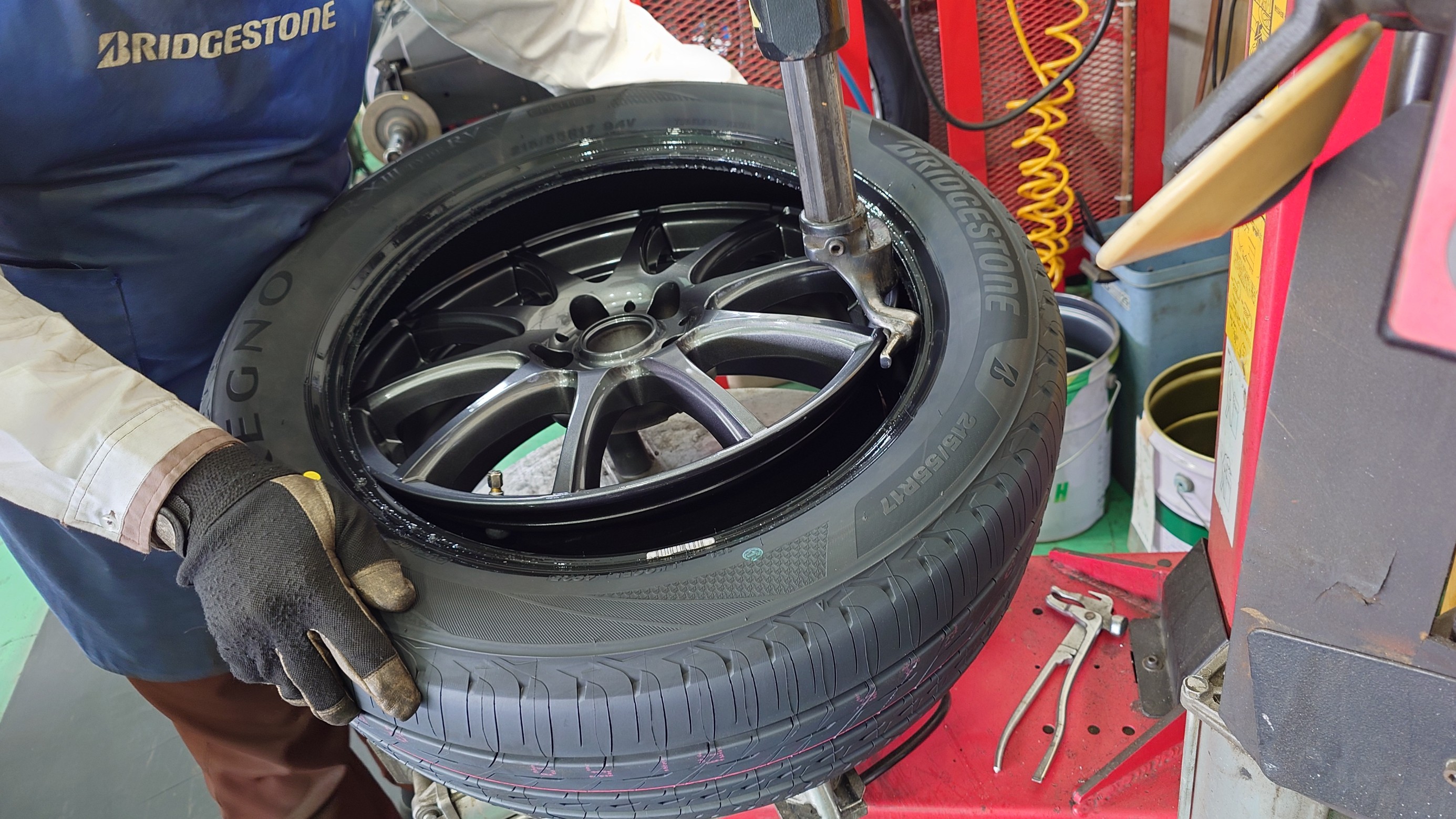 今回は、お客様お持ち込みの新品ホイールに取り付けです。