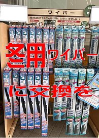 こんにちは! タイヤ交換、続々と進んでおりますが、 皆さんは『ワイパー』の交換はしていますか? 冬のマイナスの気温になると、 フロントガラスが凍ったりしますが、 ワイパーも、凍ってしまいます。 冬用ワイパーは、凍りにくい構造と素材で 冬道の走行の視界を守ってくれます! 『冬用ワイパー...