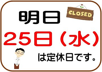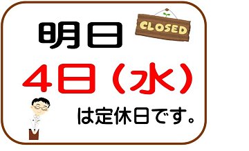 明日は『定休日』です。