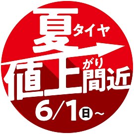 こんにちは! 夏タイヤ値上がりまであと3日となりました! 作業は後日でも、 ご購入が5月ならば、 値上がり前の価格となります!! 駆け込み購入大歓迎です!! 沢山のご来店お待ちしております!