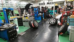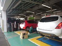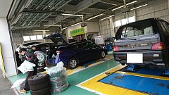 こんにちは! 本日もたくさんのご来店ありがとうございました! ピット作業も盛りだくさん♪ とても見えにくいですが、一番左ではエリシオンのアライメント調整が、一番右ではミラジーノの車高調取り付けがおこなわれていました! もちろんタイヤ交換も続々と作業をいただいております! ちらりと写...
