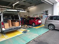 こんにちは! 本日のピットはアライメント調整作業をたくさんいただいておりました! レガシィに始まり(スイマセン写真撮り忘れました汗) 続いてタント ラストにデミオ! それぞれ担当スタッフによりしっかり調整させていただきました♪ ご利用ありがとうございました^^ 経年劣化や外的要因(縁石...
