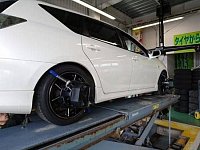 当店のオススメメニューの一つ『アライメント調整』。 タイヤの接地面を適正にさせ、タイヤの偏磨耗の抑制やハンドルの適正位置調整に効果のある作業です。 足回り交換(ローダウンなど)や車両修理時の他に、走行過多などの足回り部品の経年劣化などでもタイヤの適正角度はズレてしまいます。 ズレ...