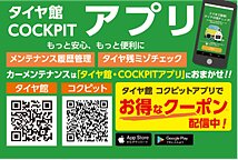 こんにちは! 『コクピット・タイヤ館アプリ』 ご存じの方も、知らない方も、 登録はお済でしょうか?? ダウンロード・会員登録をして頂くと、 愛車のメンテナンス履歴や、 次回のオススメ時期のご案内もしてくれる 便利なアプリとなっています! 定期的にお得なクーポンも発行され、 お得が満載で...