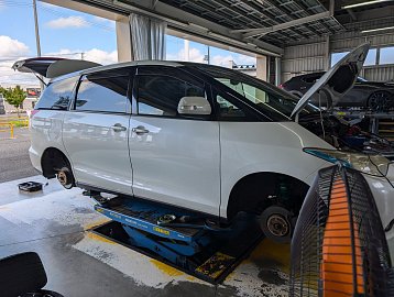 皆さんこんにちは! 本日のピット模様をお送りいたします。 まずは足回りリフレッシュ!! エスティマの足回り交換です。 以前まではTEINさんの車高調「FLEX A」を装着していましたが、 今回はリフレッシュも兼ねて「RX1」を新たに装着! 役目を終えたFLEX A... そしてピカピカの新品RX1です。 一方、...