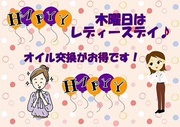 毎週木曜は『レディースデイ』(^^♪