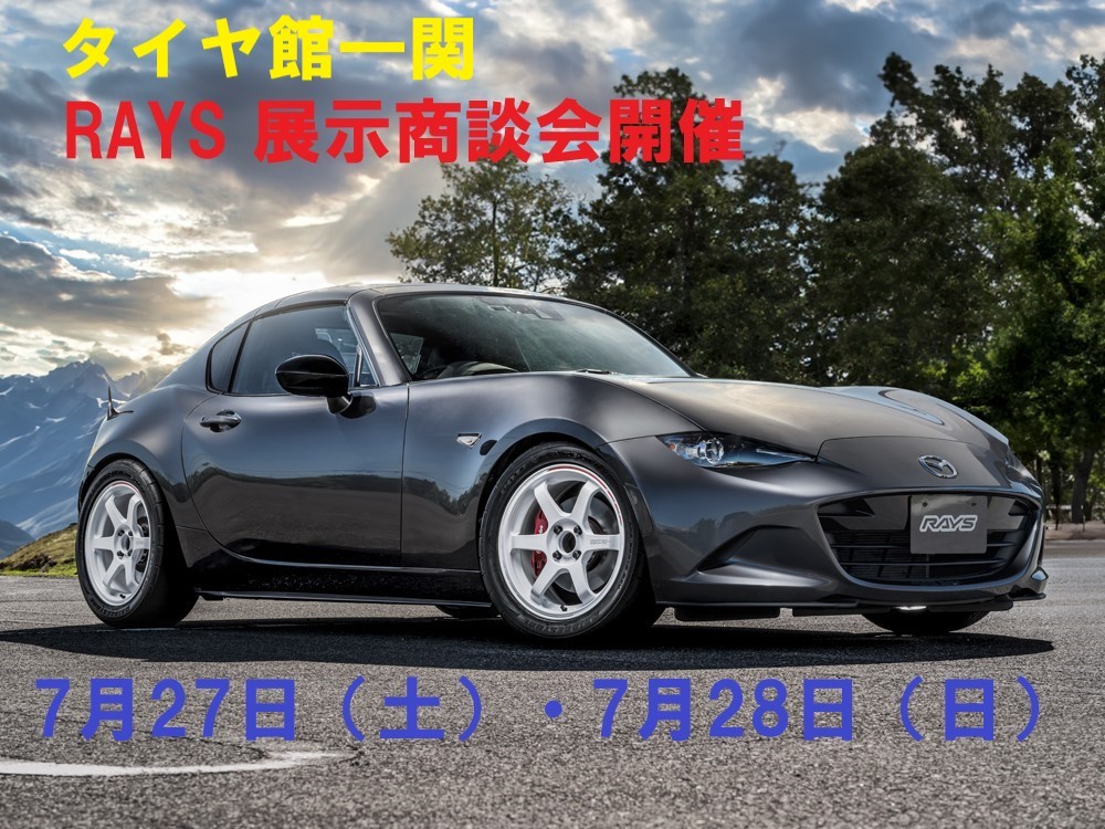 大好評開催中の『タイヤ館一関 夏のカスタムフェア』! いよいよラストスパートに入っております!!! そして最後の週末を飾るのは・・・・ 遂に来ました! 『RAYS』さんです! スポーツ系の鍛造ホイールからドレスアップ系ホイールまで何でもござれの『RAYS』ホイール。 今週末の27日(土)・2...