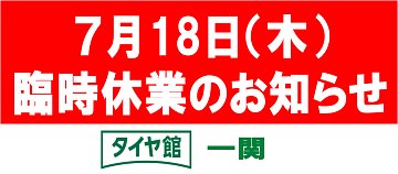 7月17日(水)18日(木)休業となります。