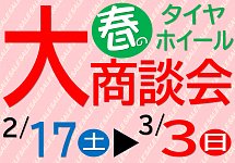 こんにちは! 最近は、日が長くなったな~と感じております。 夕方5時でもうっすら明るい感じがして、 春が一歩づつ近づいているな~と感じております。 そこで!!!解禁!!! 夏タイヤ売り出し情報!!! タイヤ館一関『春の大商談会』!! 今週末の17日(土)より 来月3日(日)まで 開催致し...