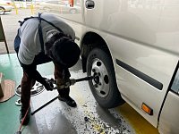 マイクロバスもタイヤ交換!