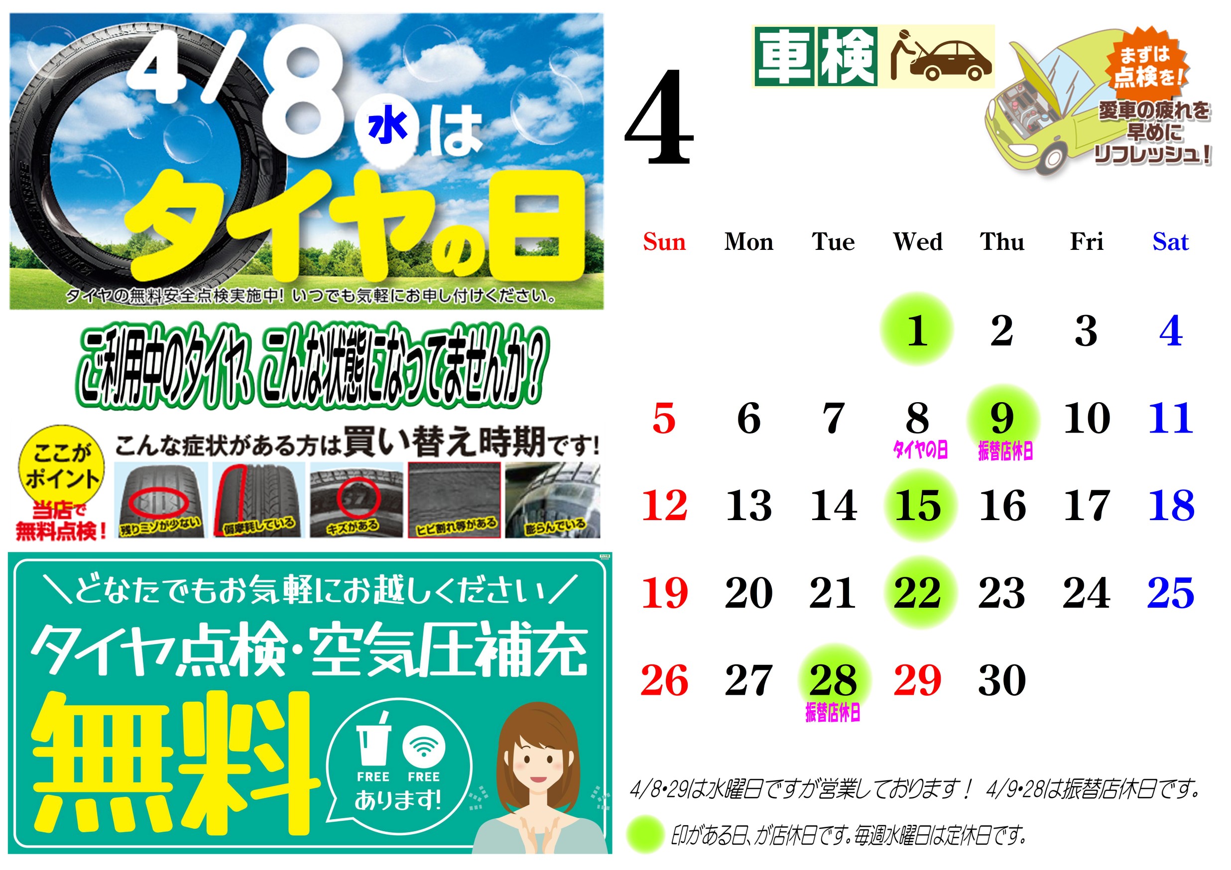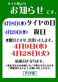 4/8は「タイヤの日」!コクピット・タイヤ館でタイヤ点検しませんか?