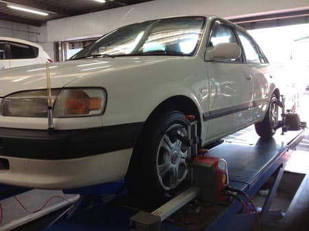 専用のアライメントテスターと、知識が豊富なスタッフがいるタイヤ館に