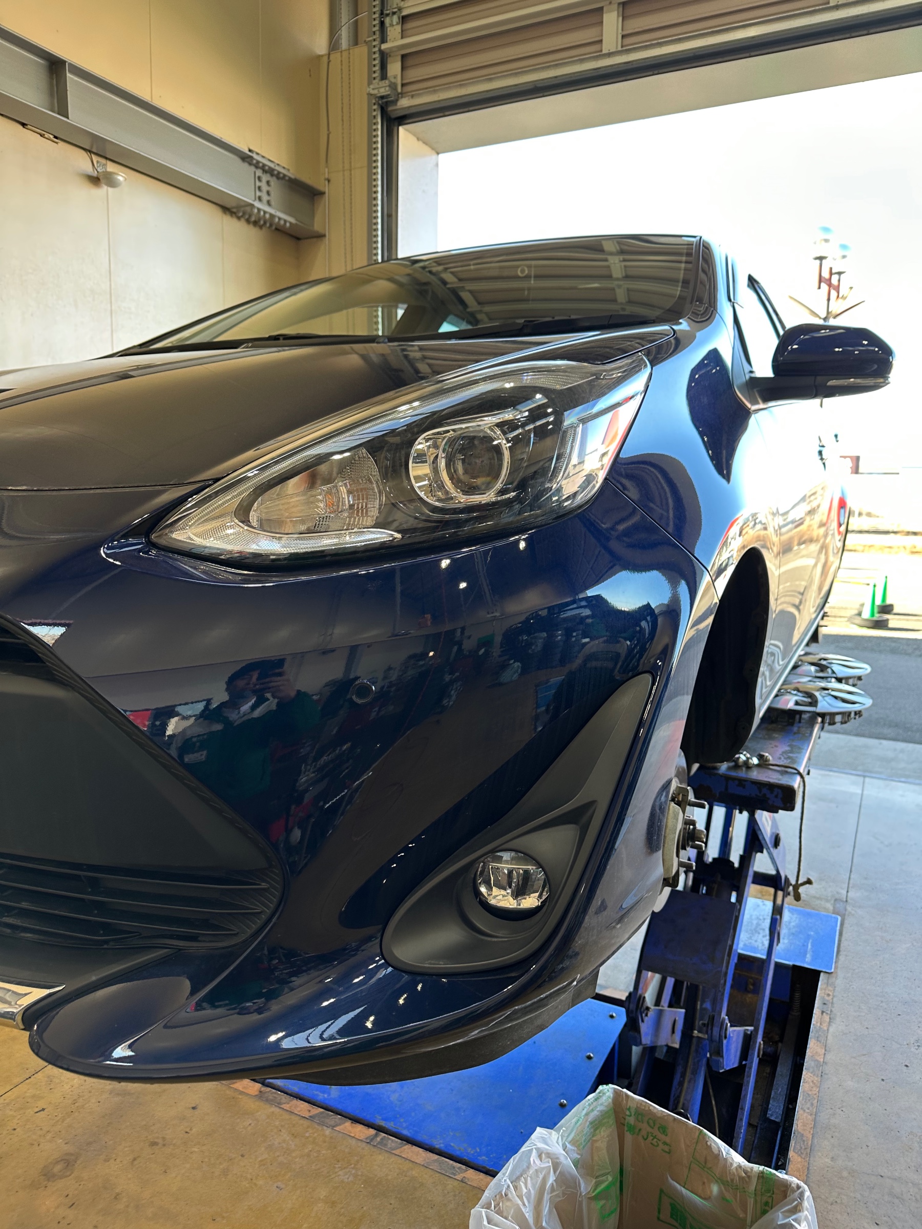 トヨタ、アクアでお越しのお客様に冬タイヤから夏タイヤに履き替えと同時に、ウルトハブ防錆を施工させていただきました。