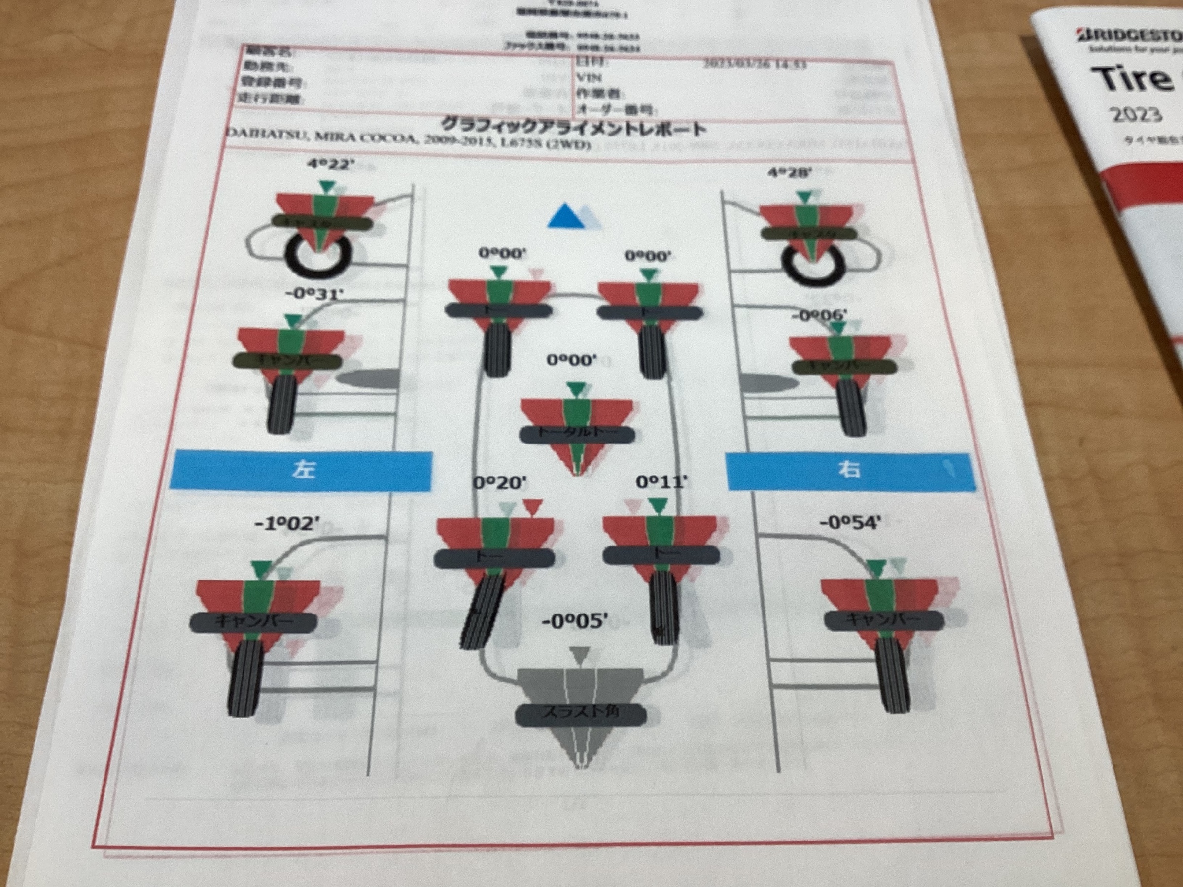 斜めに進んでいくと言っており、タイヤも片減りしてました。