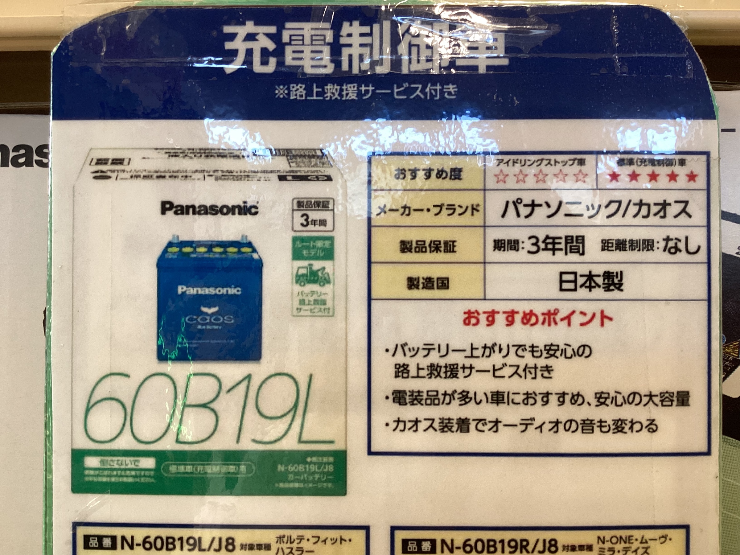 バッテリーにロードサービスが付いてくる。