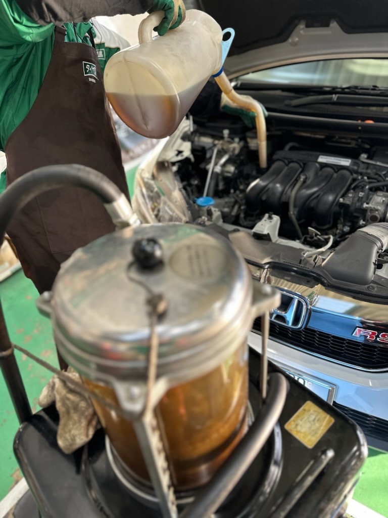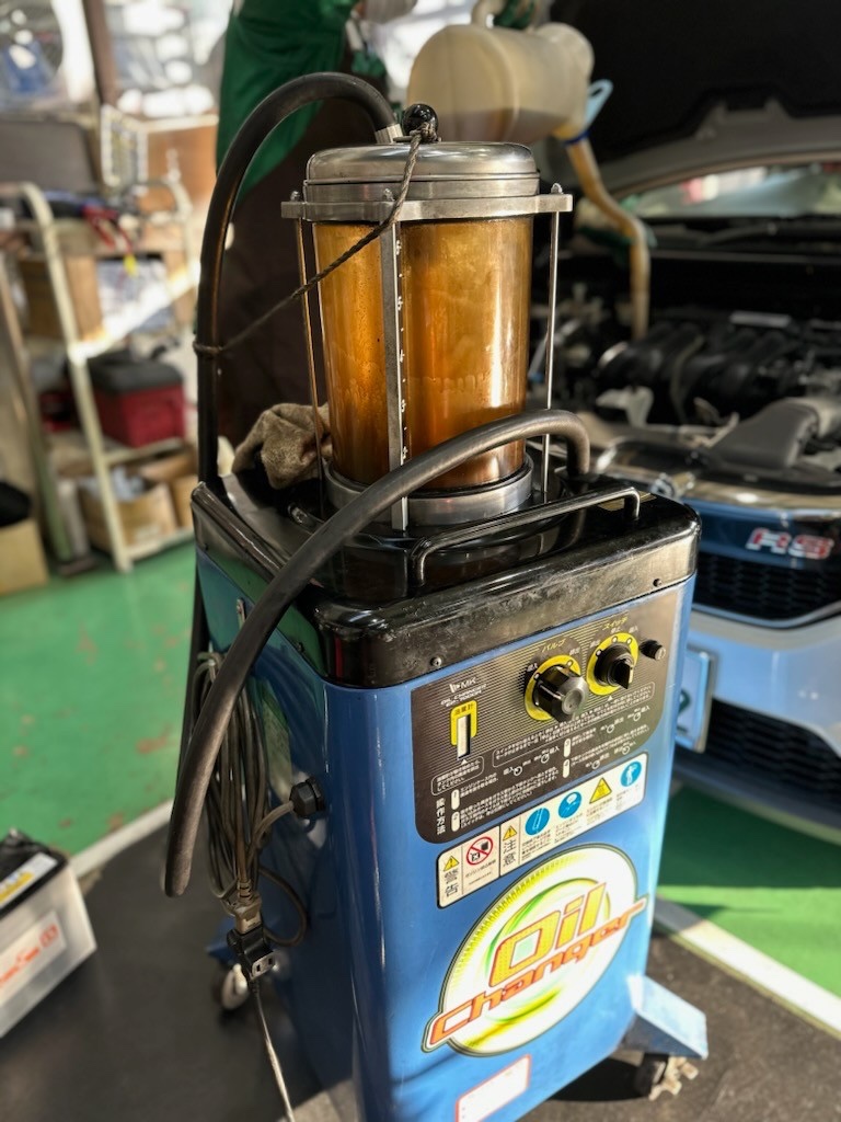 こちらの機械で入ってるオイルを抜きます!