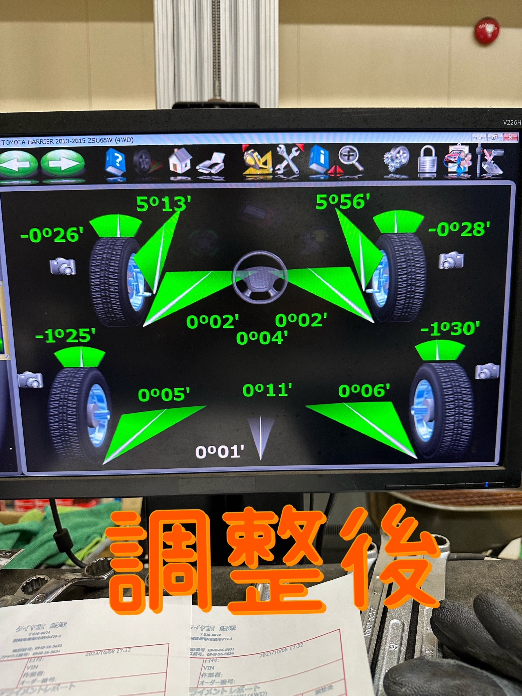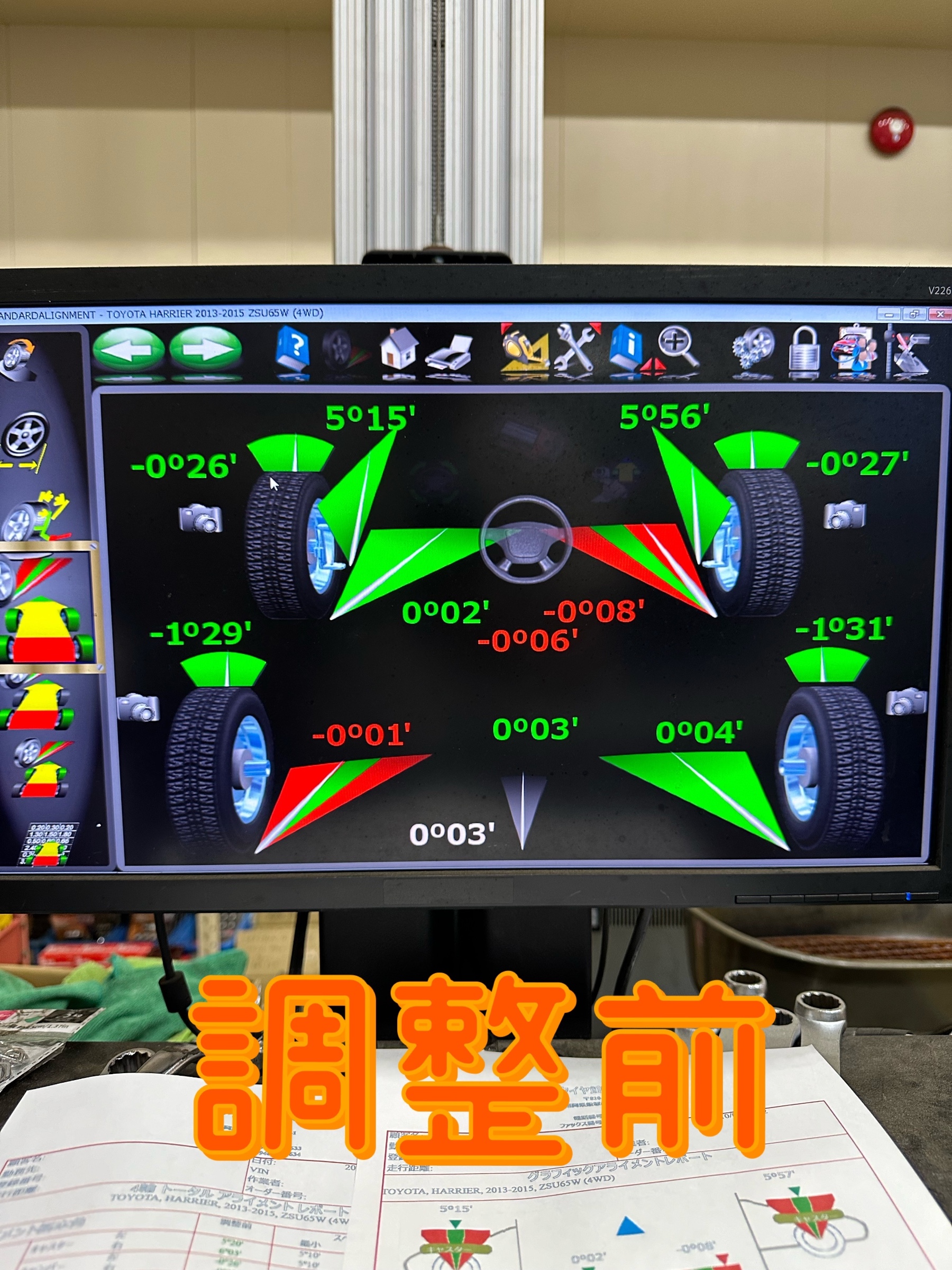 トヨタ ハリアー アライメント測定、調整をしました。