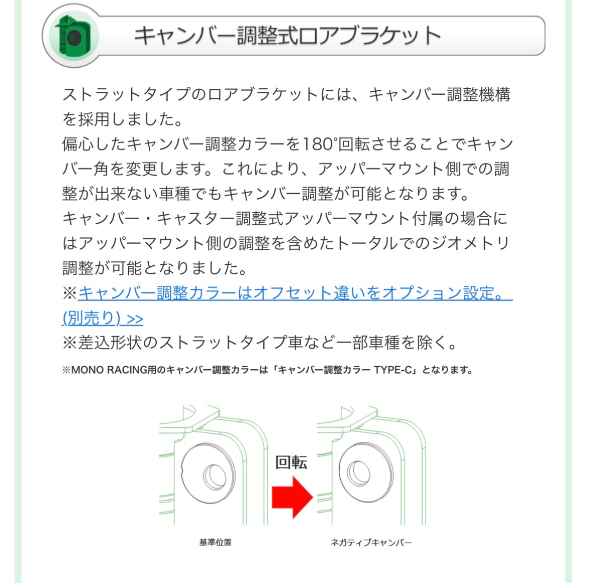 キャンバー調整カラーが2種類付属してます。