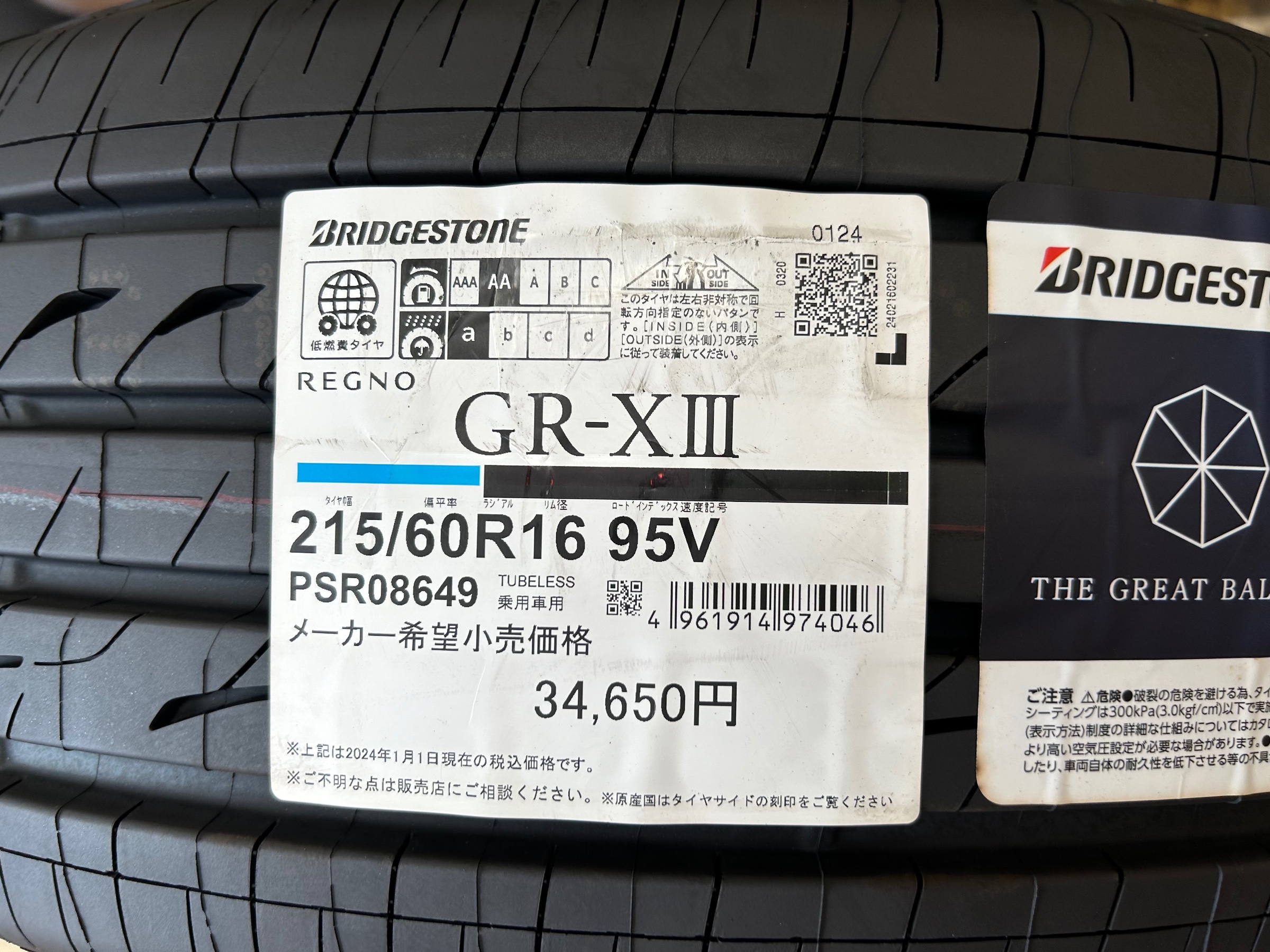 お取付けした タイヤ は ブリヂストン レグノ GR-XⅢ です!