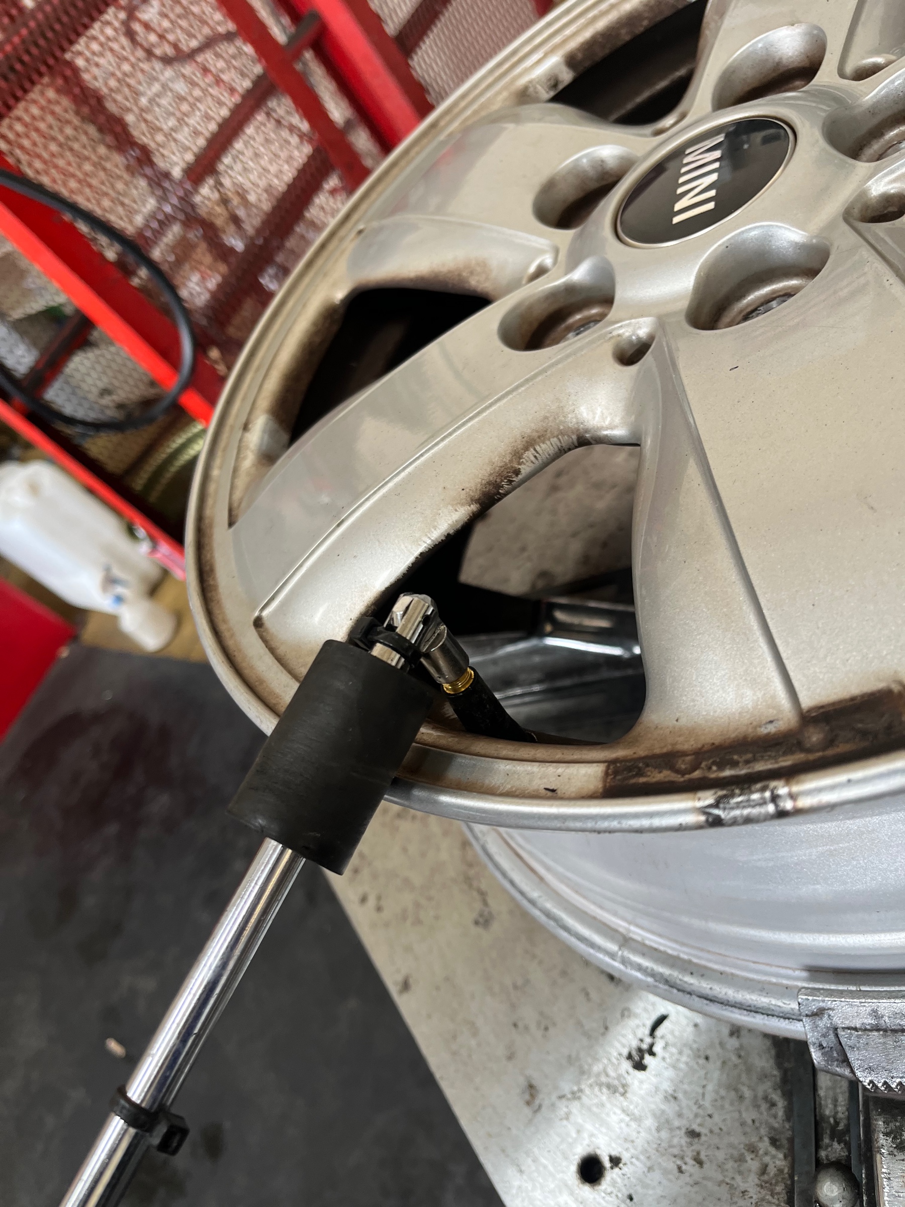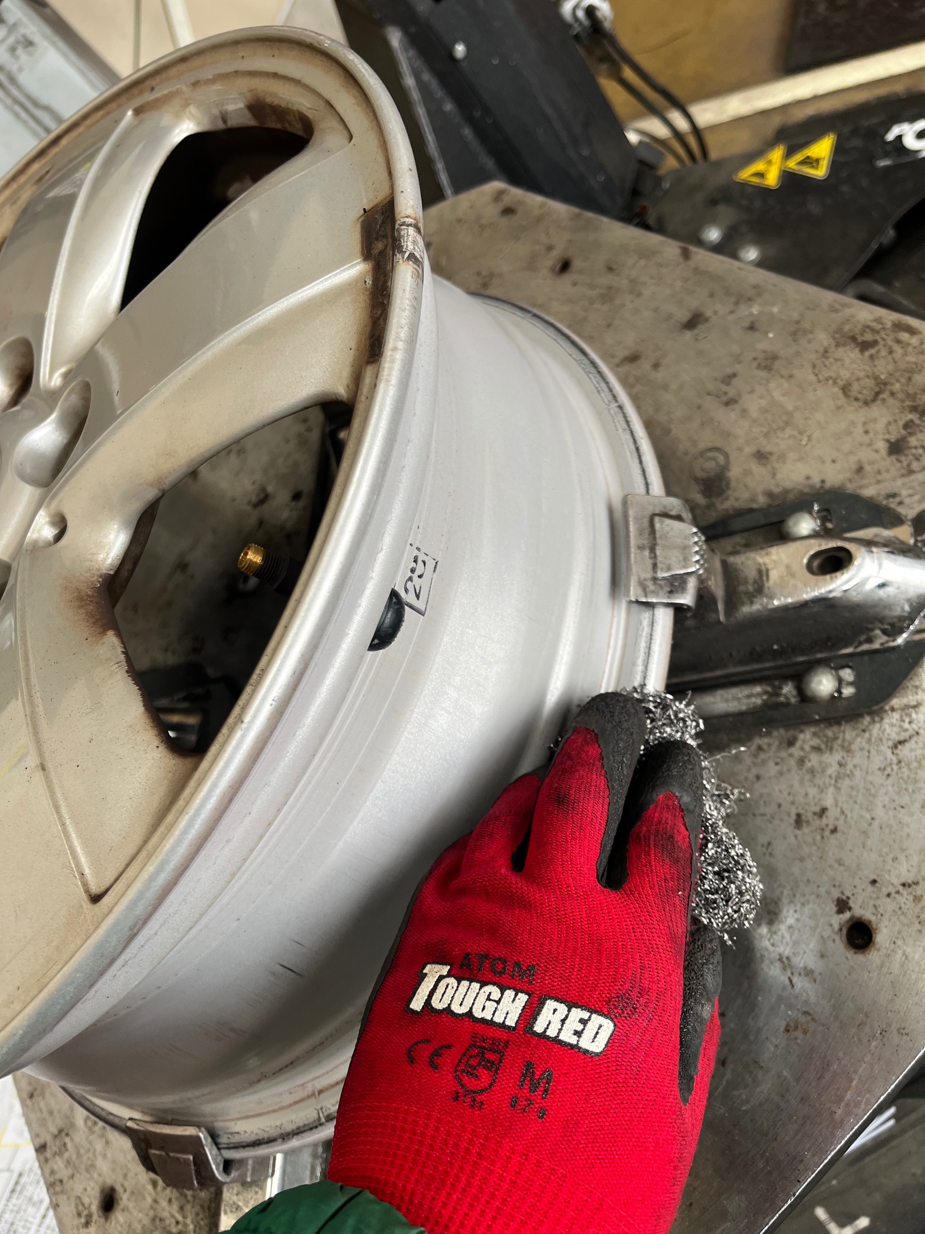ホイールについたゴムカスを取り除きます(エア漏れの原因になります)