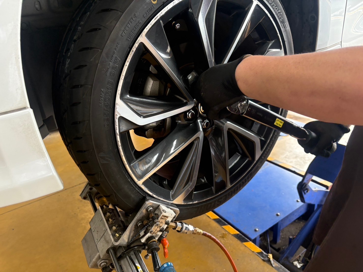 新品タイヤ交換後1週間もしくは100km慣らし走行していただき、空気圧のバラつきが出てないかの調整と再度ナットの増し締めをさせていただいております。