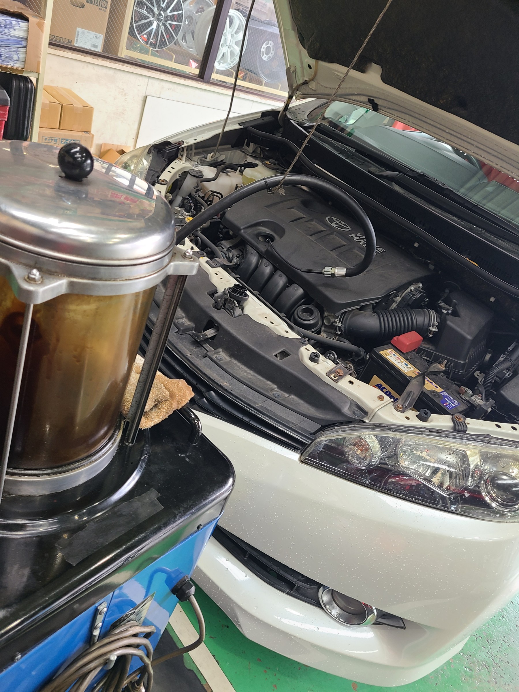 当店では、上抜き用のオイルチェンジャーを使用してオイルを交換しています!