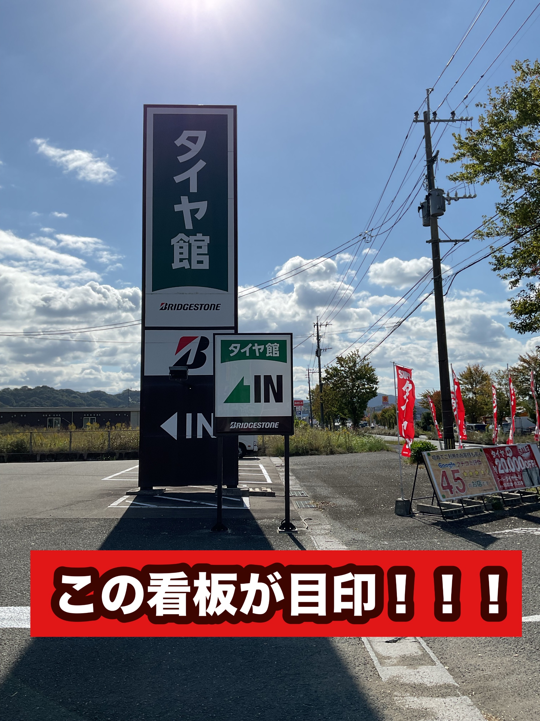 大きなタイヤ館の看板とは別に「IN」看板が設置されましたので