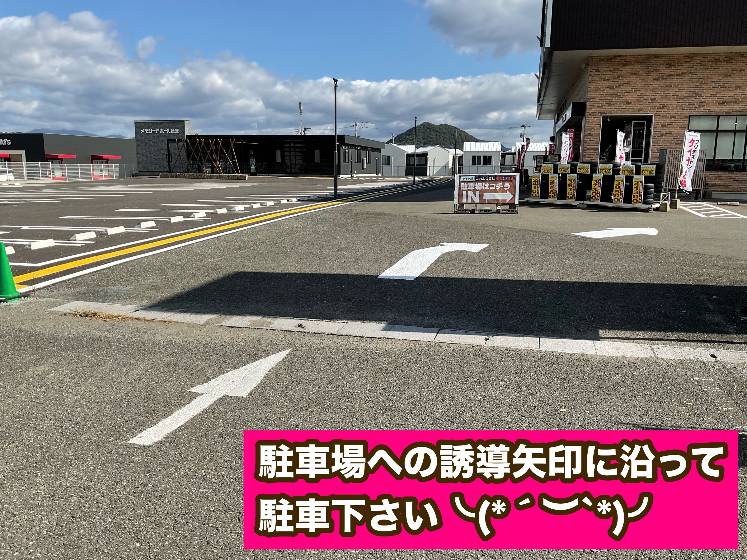 駐車場への誘導矢印を大きく書き足しました!!