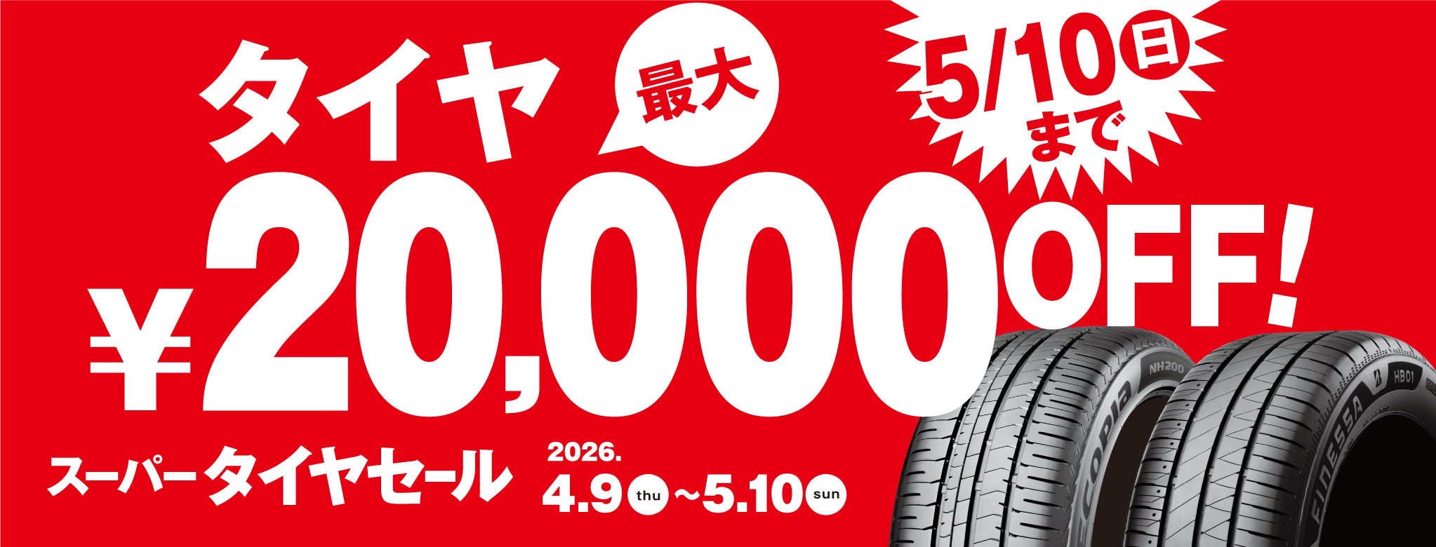 ★ブリヂストンタイヤ4本購入で店頭表示価格から最大20,000円引き