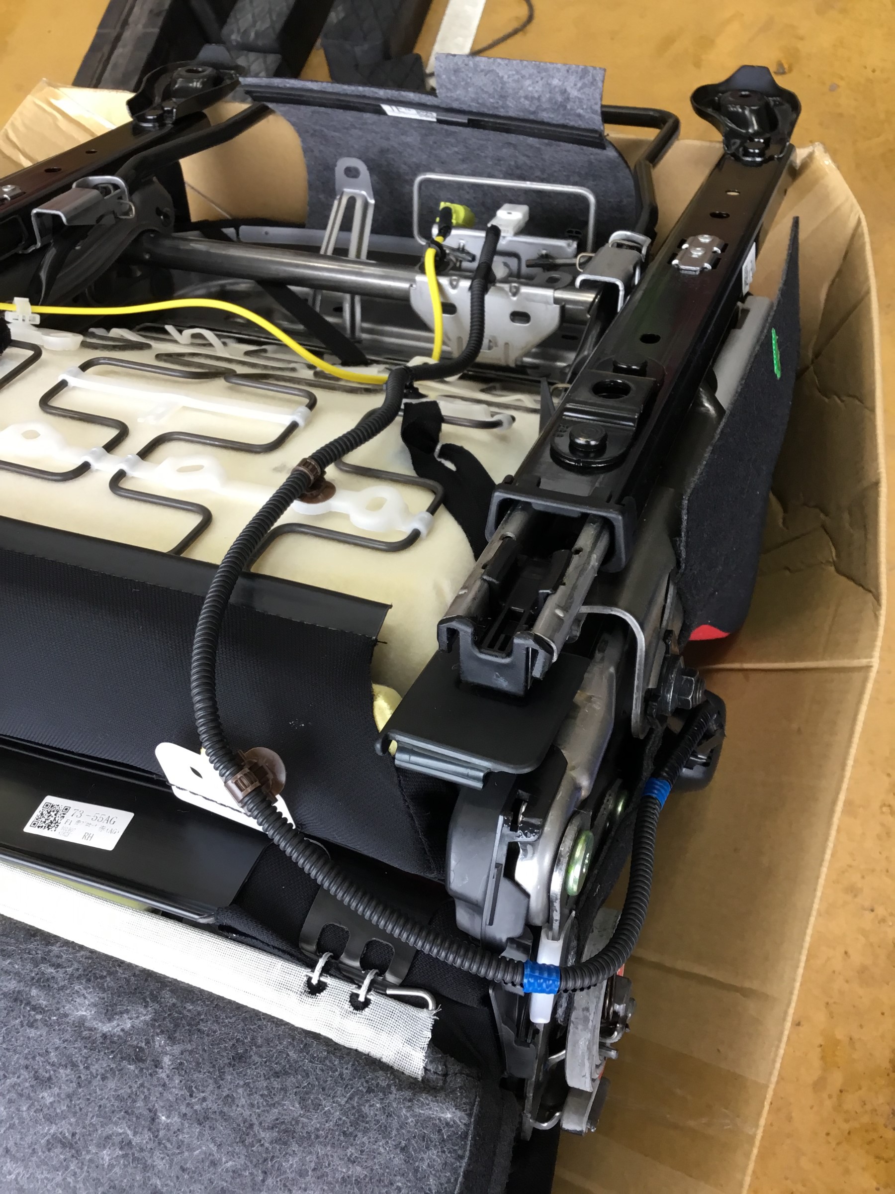 本来はシートとシートレールを組み付けてから取付していきますがリクライニング出来ないシートなので、装着時の傷防止の為、車内で組付けます。