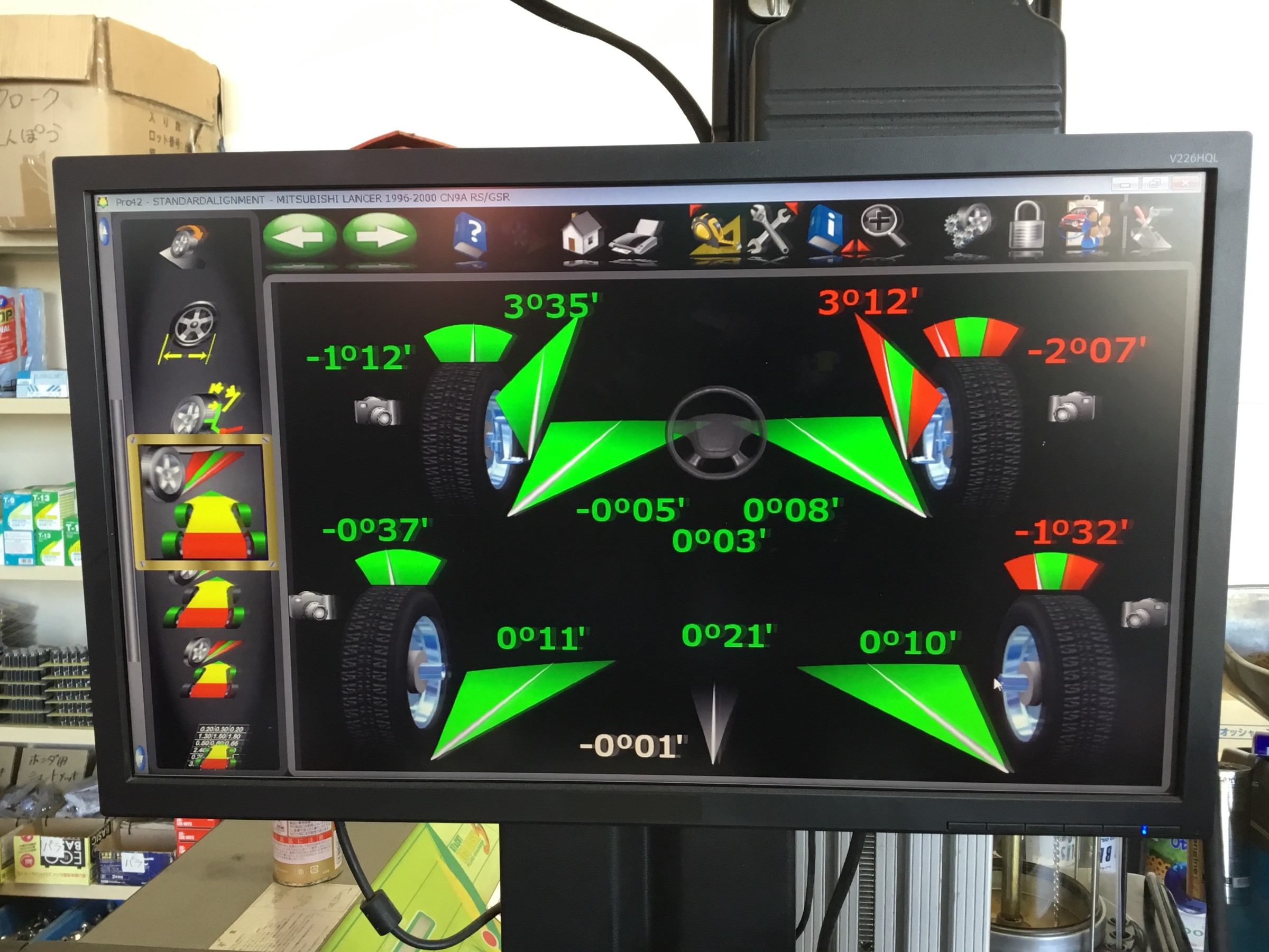 当店では最新の3Dアライメントテスターを使って熟練スタッフがしっかりと作業させて頂いております。