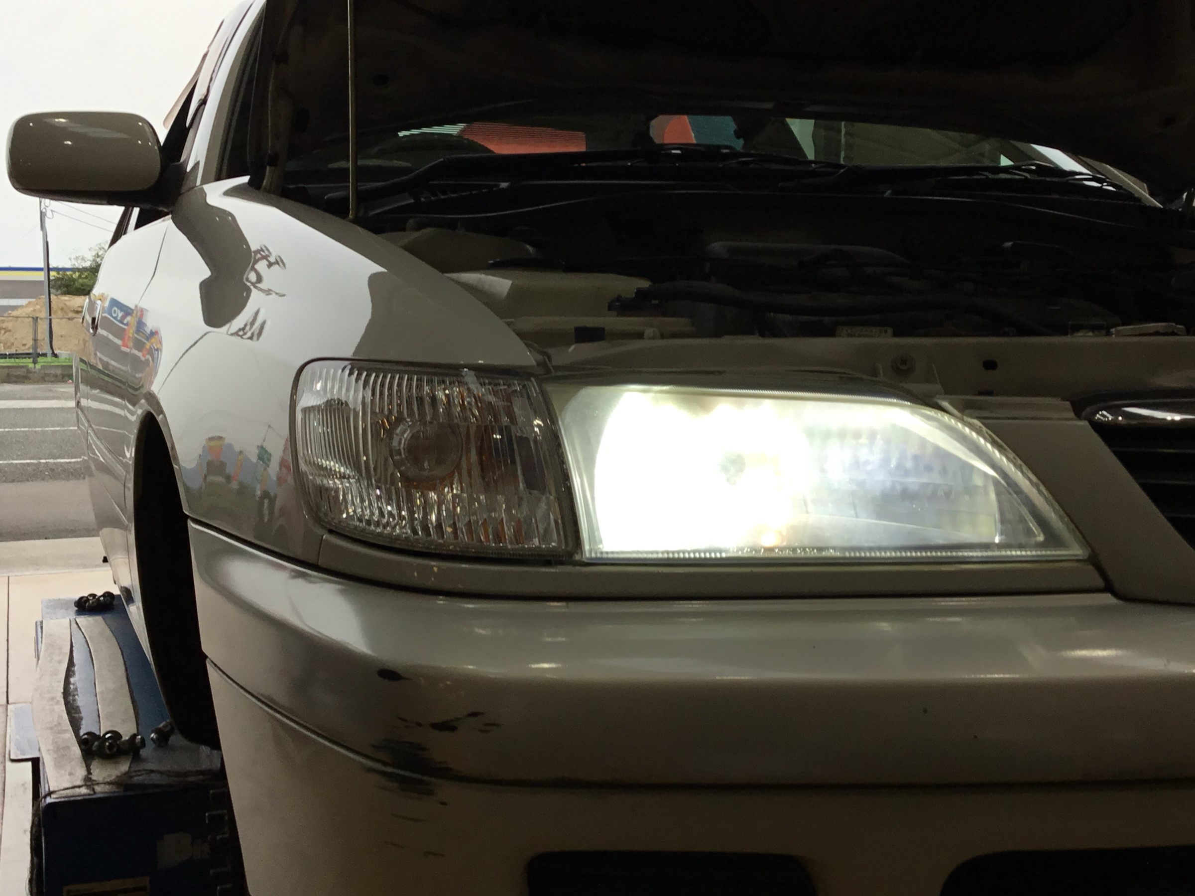 というご相談から明るいLEDヘッドライトに交換することになりました。
