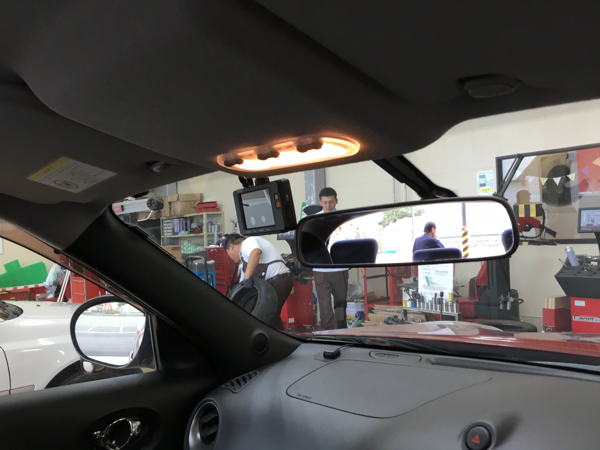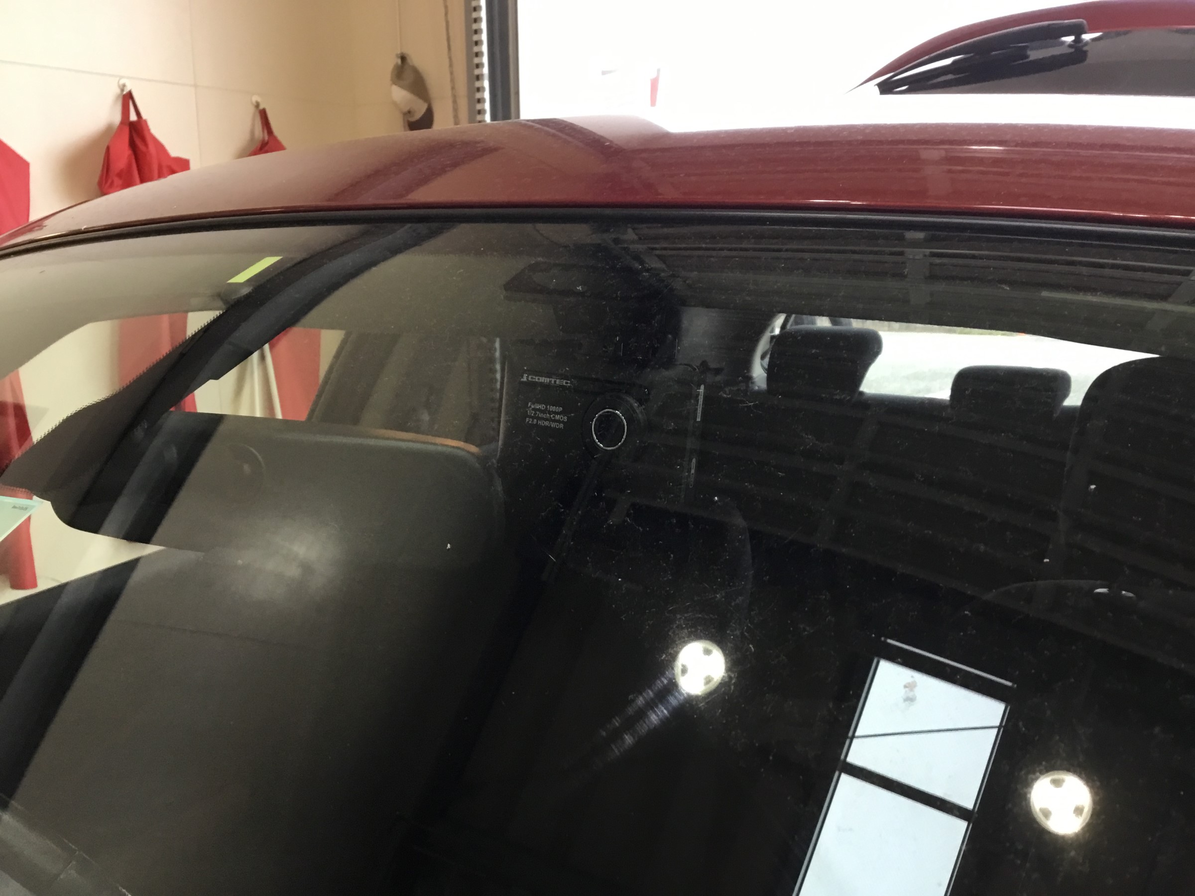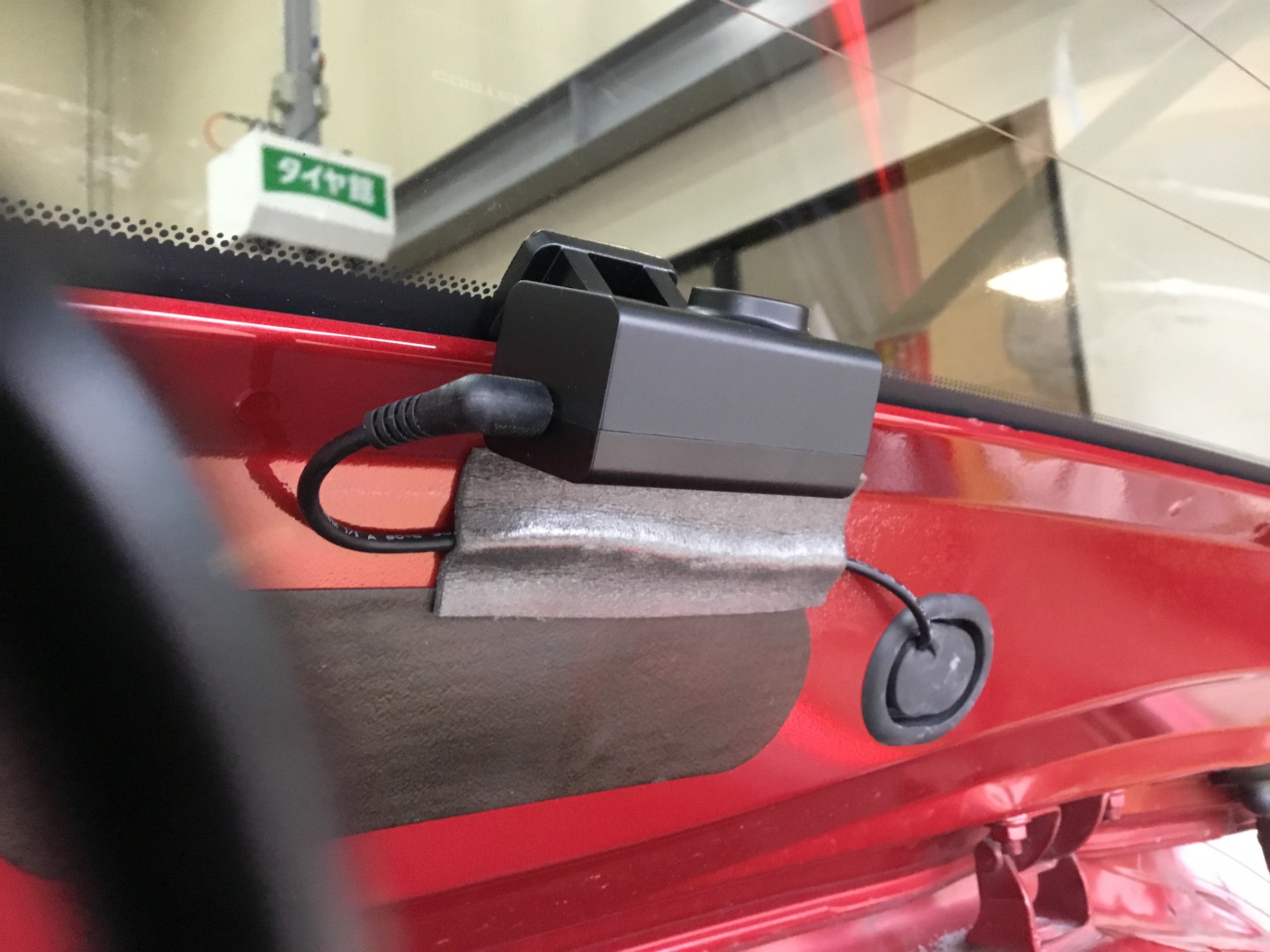 お次はフロントガラスに本体カメラを取り付けていきます!