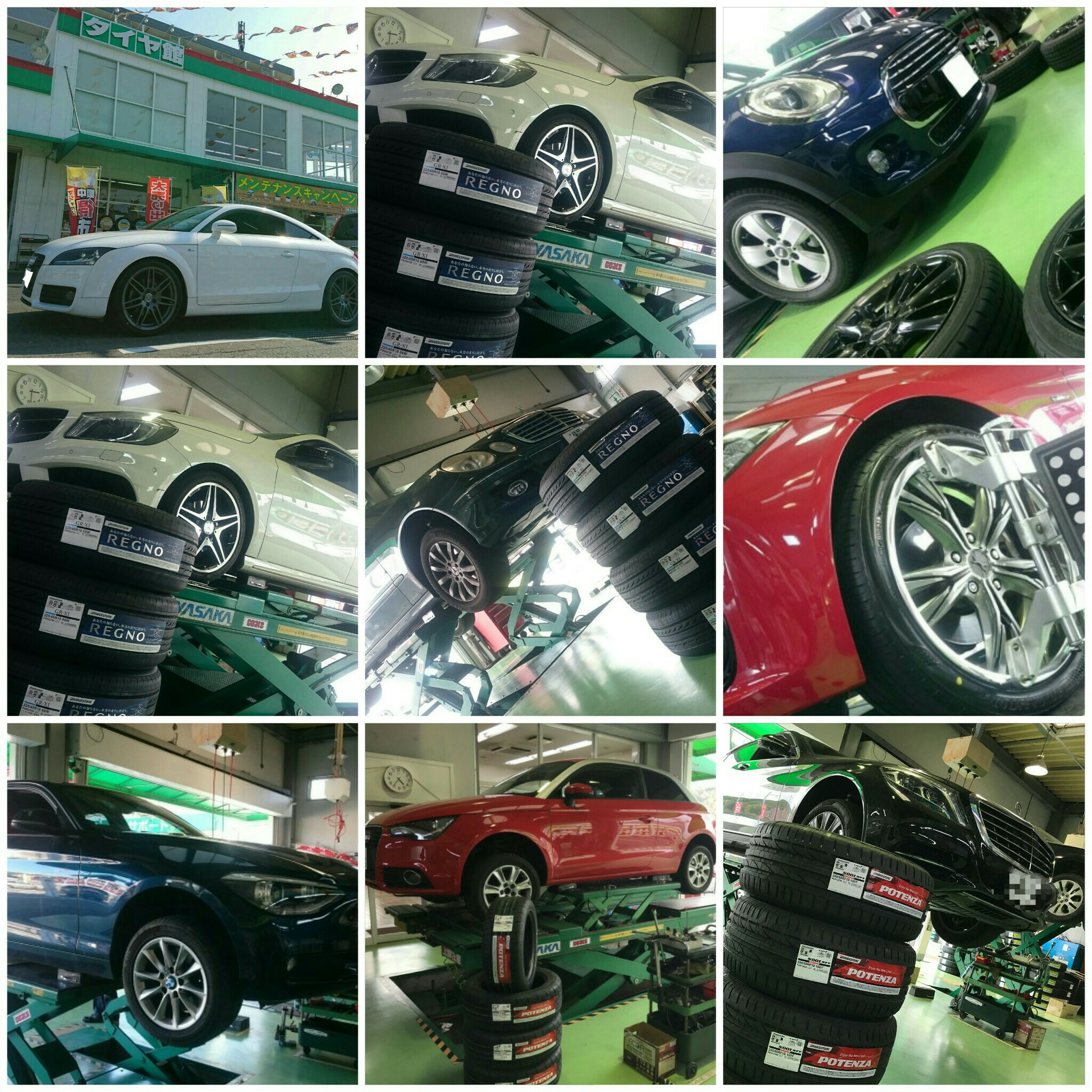 当店では 輸入車各種対応できるように、タイヤを在庫してますが、サイズによっては 在庫がない場合がありますので、ご了承下さい!