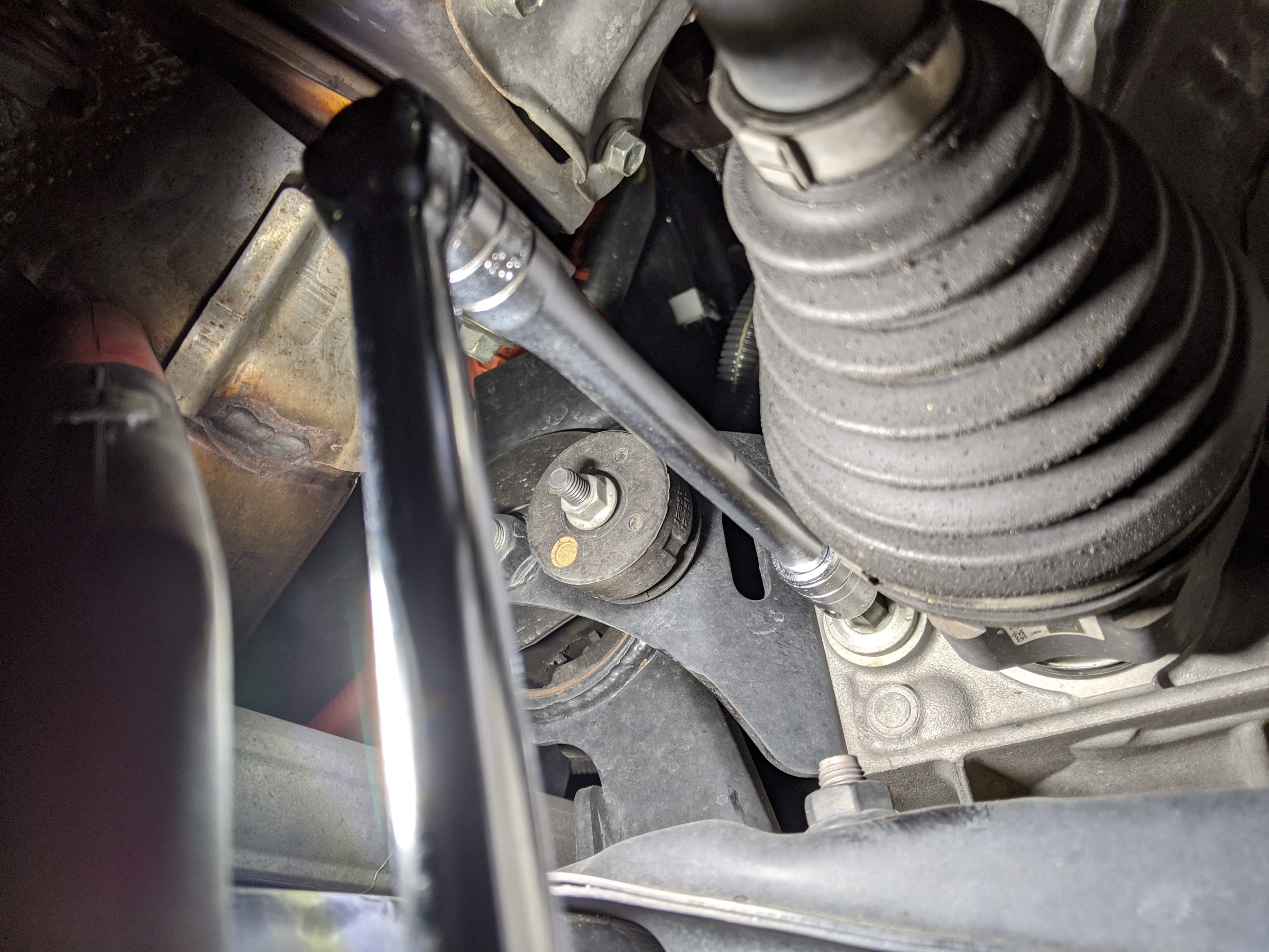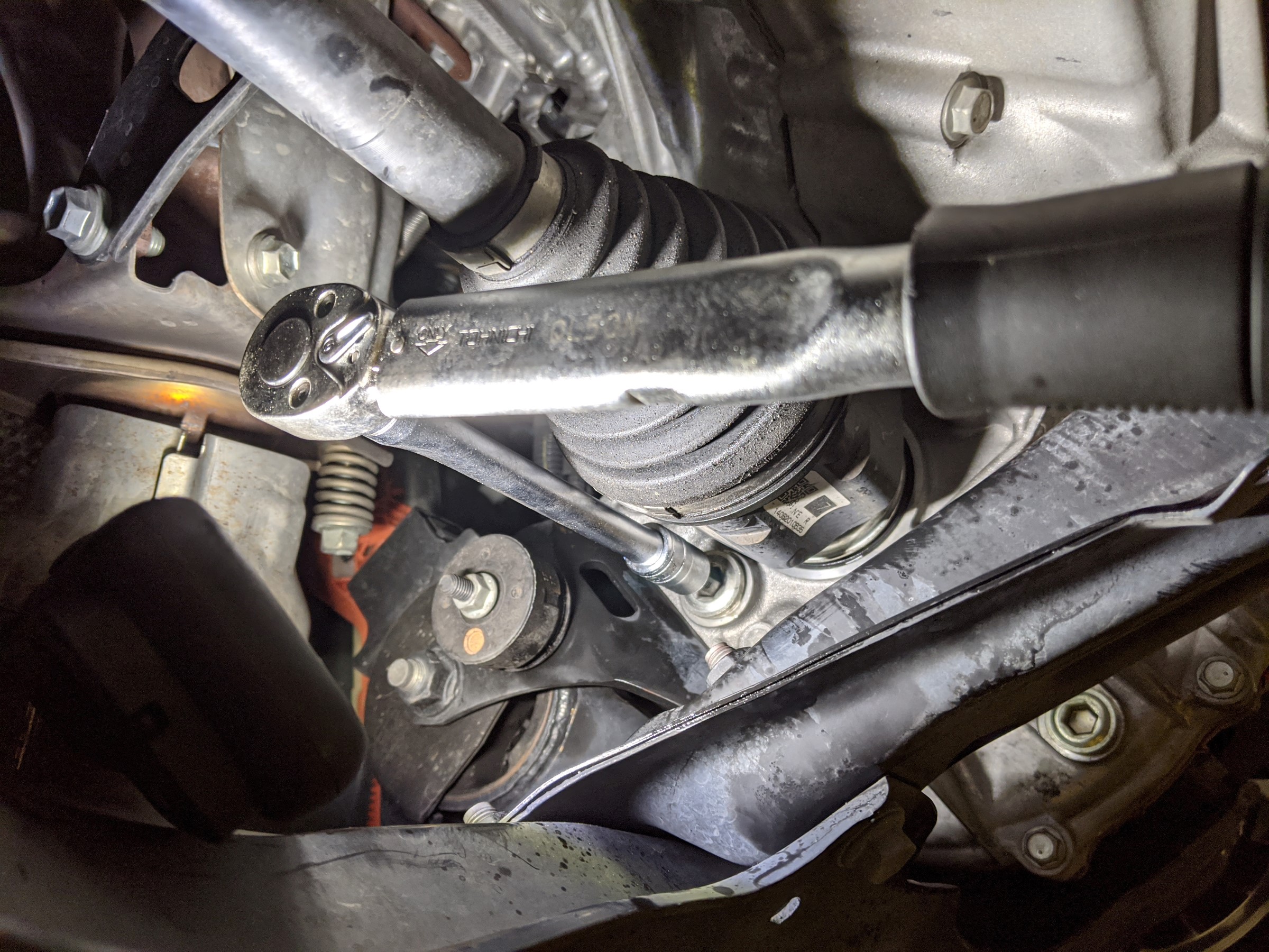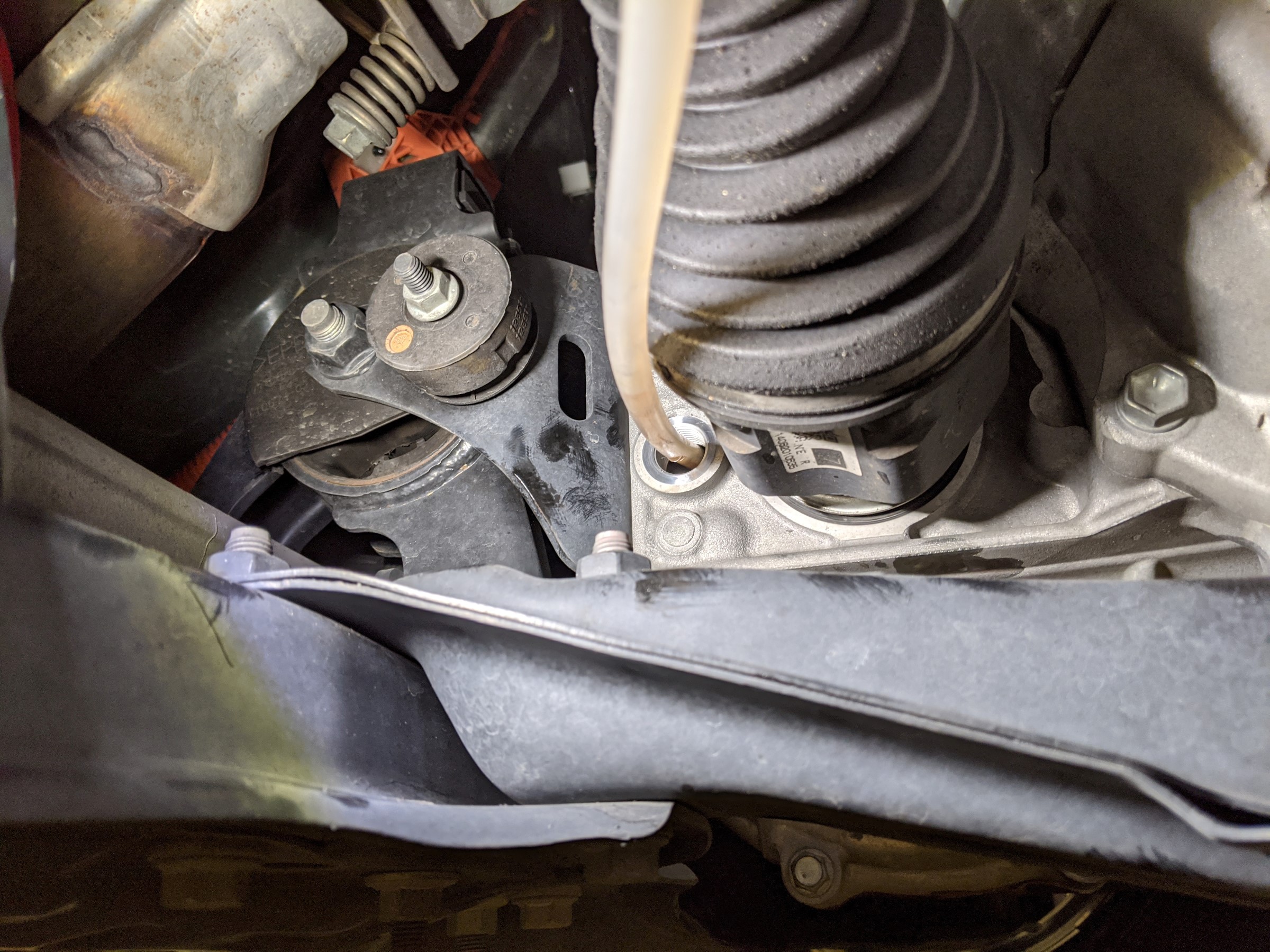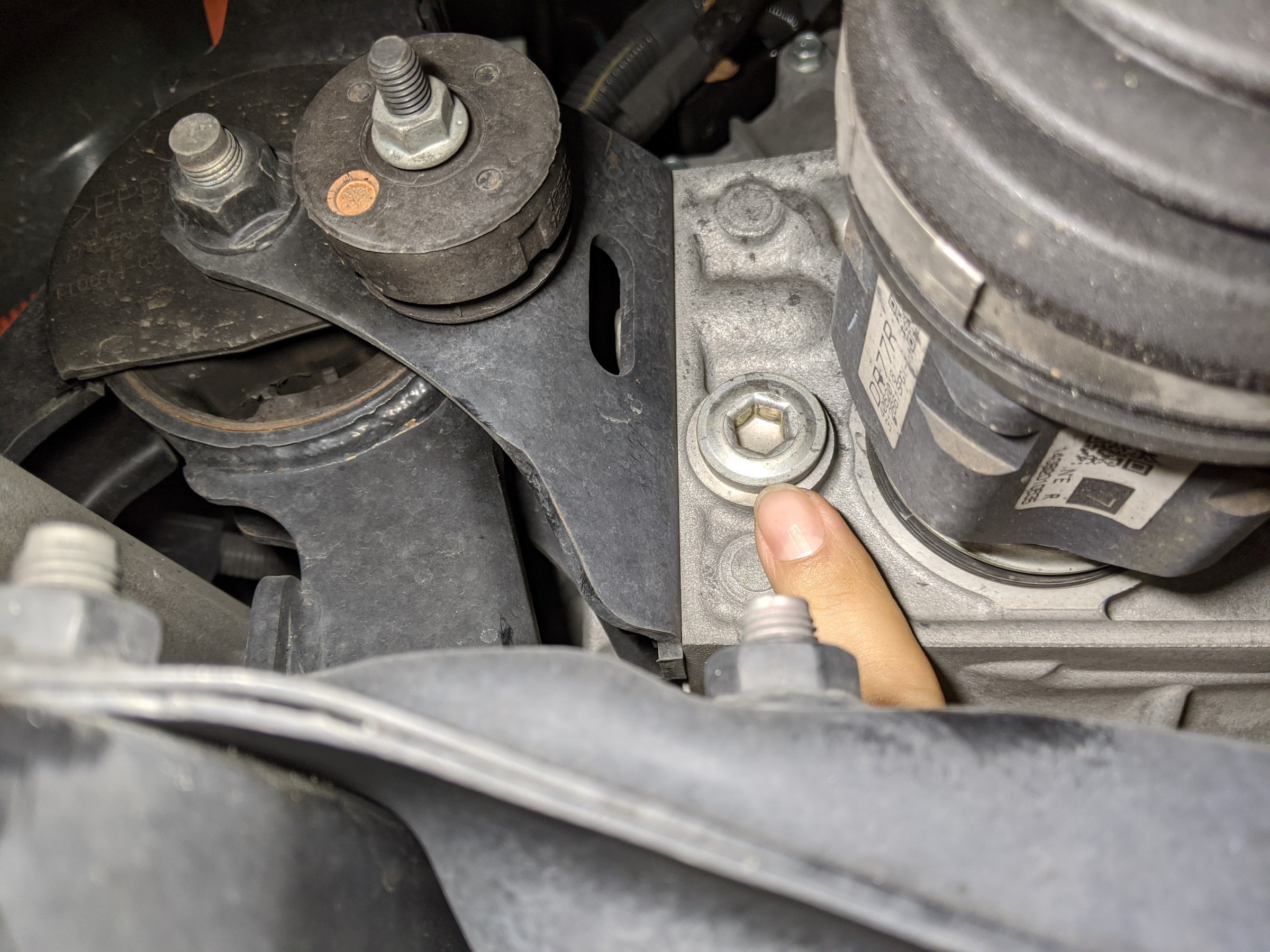 CVTオイルのドレンボルトは上下2か所にあります。上側が入れ口、下側が抜き口になります。