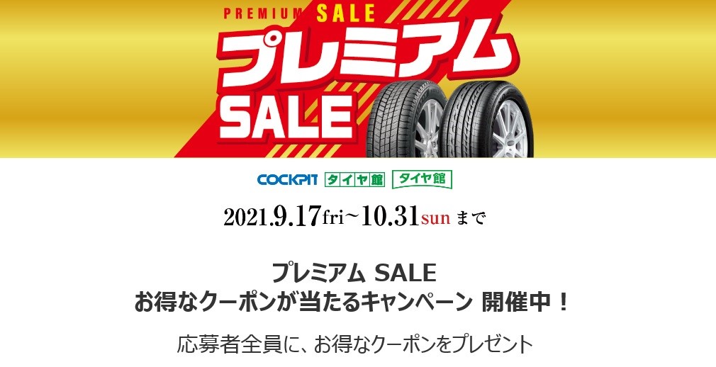 タイヤ館伊川谷では9月17日(金)~10月31日(日)まで『プレミアムセール』を開催中!