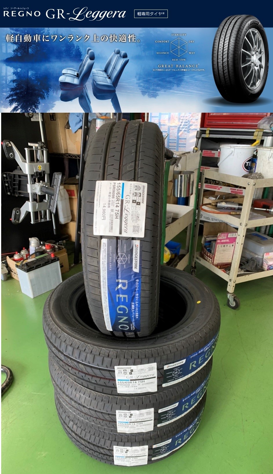 【タイヤ ブリヂストン レグノ GR-レジェーラ 155/65R14】です
