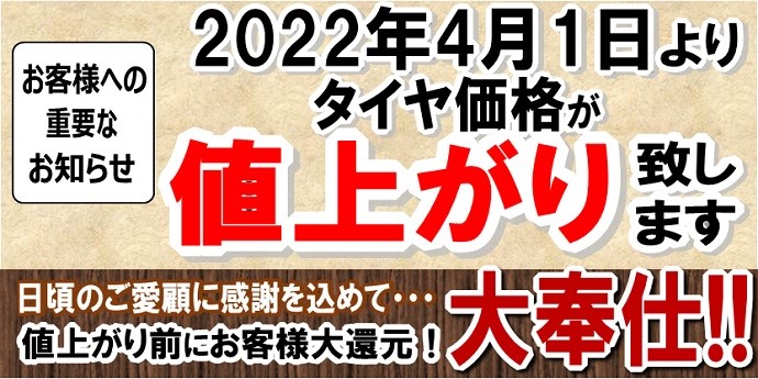 タイヤ値上がりまであと少しです!!
