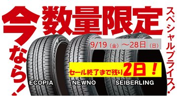 終了間際!期間限定!!『タイヤスペシャルプライスデー』開催!!