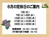 いつもタイヤ館池田店をご利用いただきありがとうございます!! 昨日から6月ですね!!!6月は上期の締め月だったり、 学生さんもテストがあったりで皆様バタバタする月ですが 元気に頑張りましょう~(*'▽')♪ さてさて、6月の定休日のご案内です!(^^)! 1日(水) 7日(火)・8日(水) 14日(火)・1...