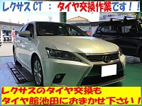 こんにちは~(^_-)-☆ 本日のタイヤ館池田のPIT作業ご紹介です! 本日のご紹介車両は… 「レクサス:CT ZWA10」 作業内容は「タイヤ交換作業です!!」 レクサスの人気のハイブリッドカー「CT」。 走行性能と環境性能を両立させた レクサスのコンパクトモデルで 人気の車ですね(^^)/ 今回はブリヂスト...