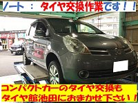 こんにちは~(^_-)-☆ 本日のタイヤ館池田のPIT作業ご紹介です! 本日のご紹介車両は… 「ニッサン:ノート E11」 作業内容は「タイヤ交換作業です!!」 ニッサンの人気のコンパクト「ノート」。 軽快な走りと手ごろなサイズでまだまだ人気の 初代モデルですね(^^)/ 今回はブリヂストンの 「プレイズ...